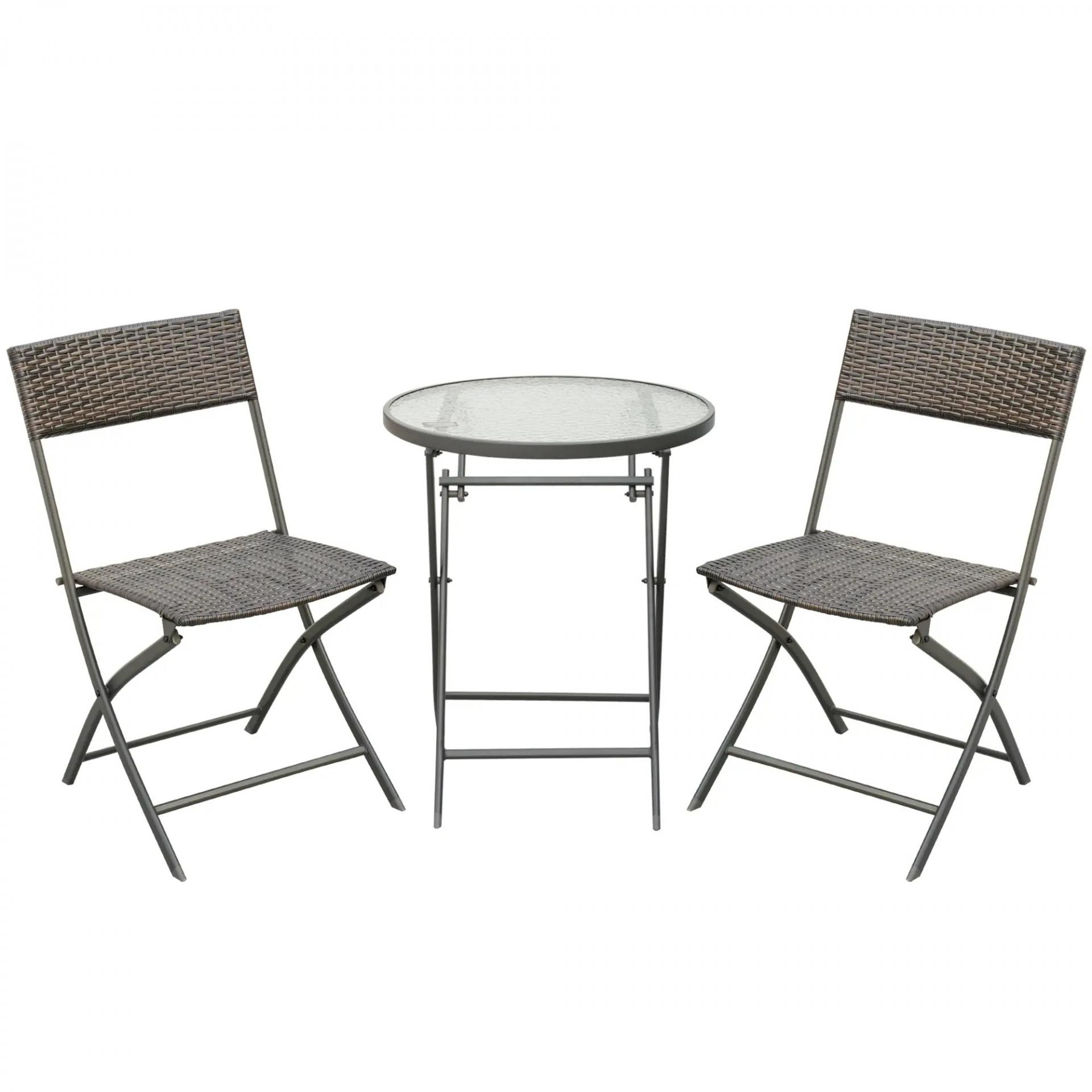 Conjunto de Muebles de Jardín con Sillas Plegables y Mesa de Vidrio para Terraza Patio Marrón