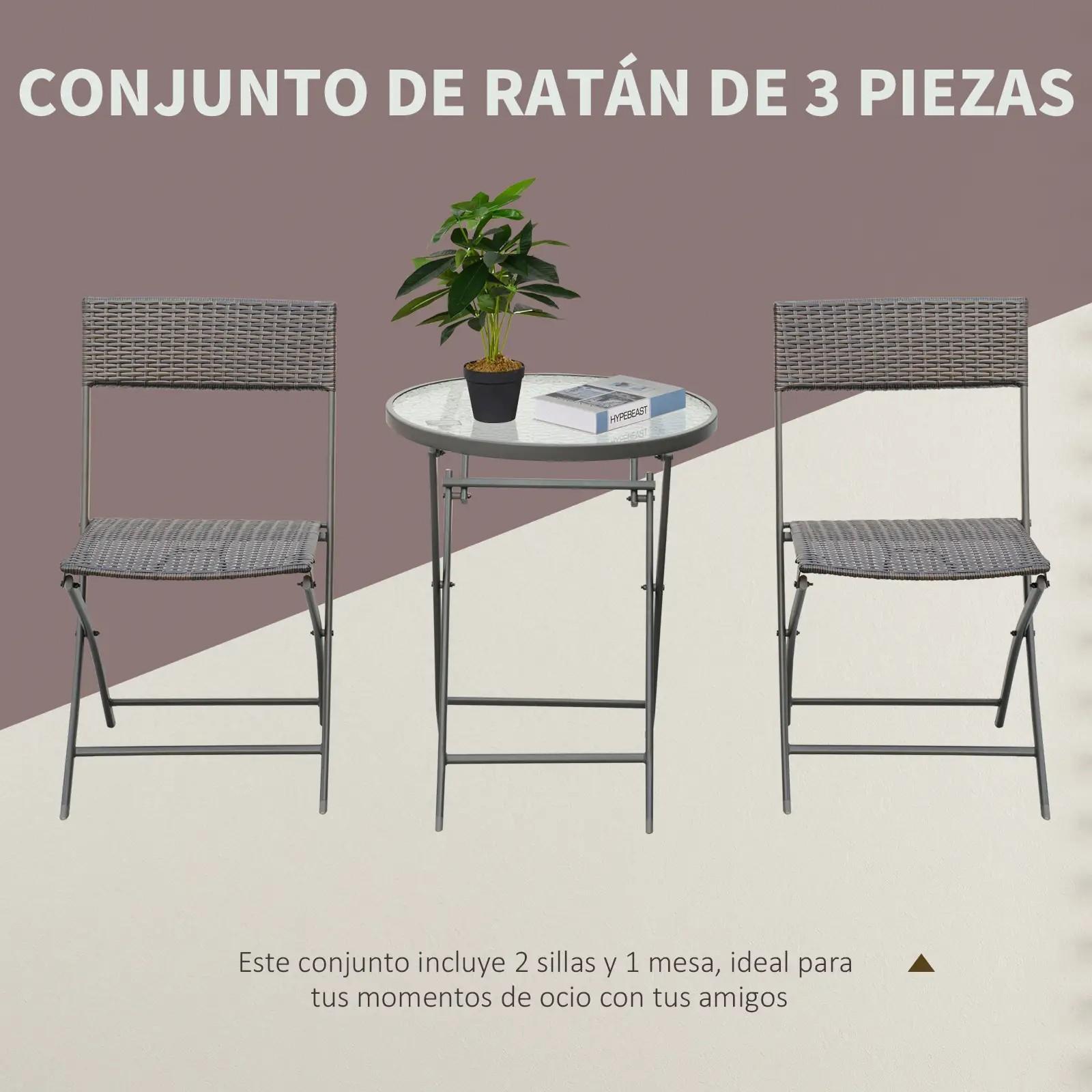 - El conjunto incluye 1 mesa y 2 sillas. Se puede utilizar en interiores y exteriores. Es un elemento perfecto para el jardín, terraza, patio o cualquier espacio de exterior