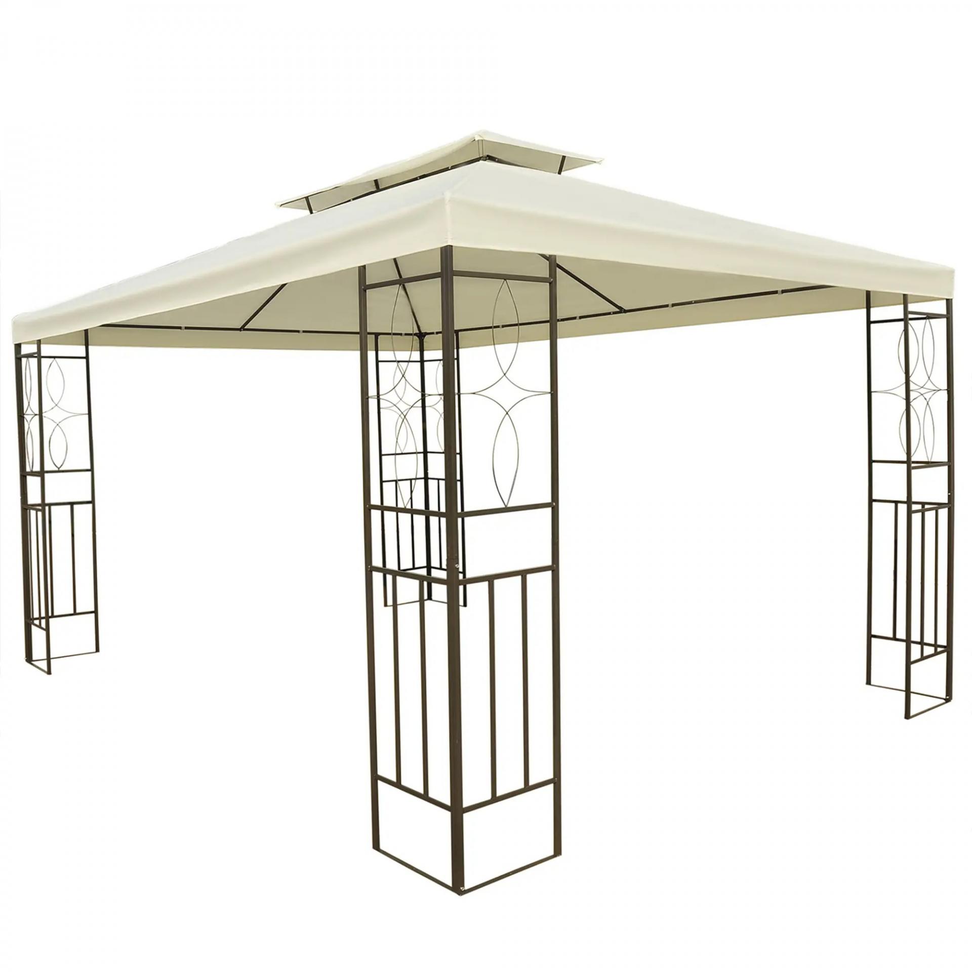 Cenador de Jardín 4x3m con Doble Techo Estructura de Acero Anti-UV para Exterior Patio Terraza Blanco Crema