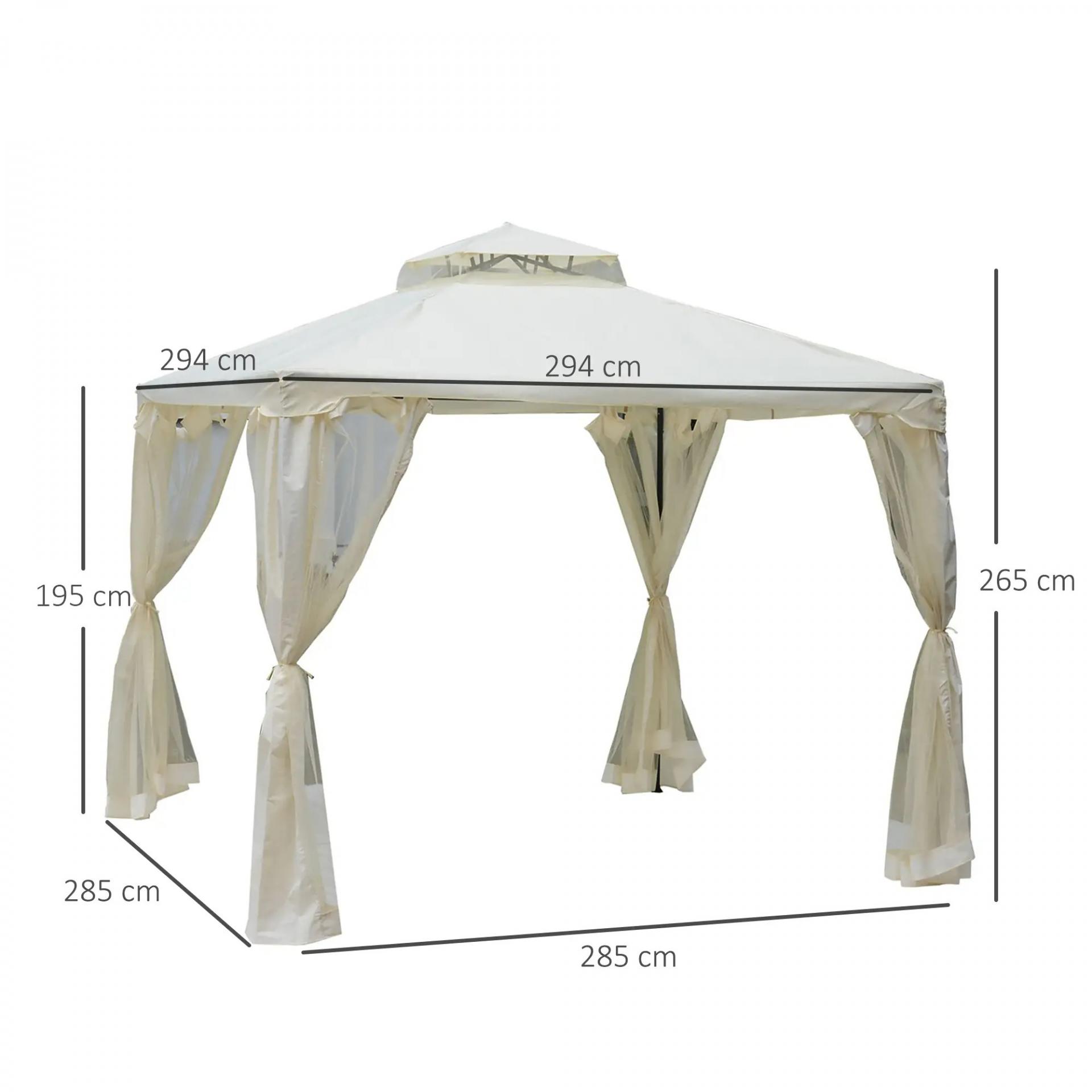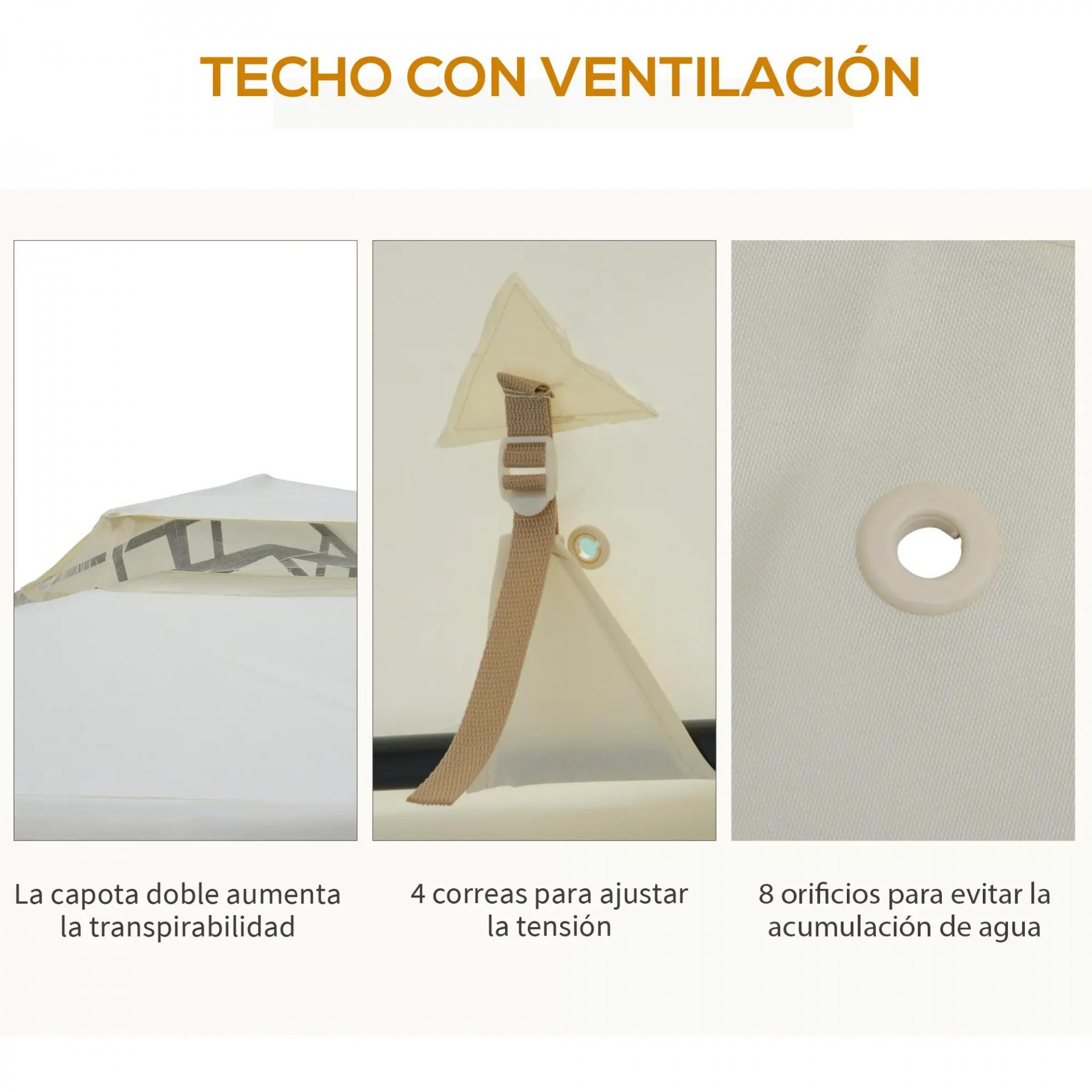 Cenador de Jardín 3x3 m Pabellón de Exterior con Doble Techo de Ventilación 4 Cortinas Mosquiteras Laterales con Cremallera 8 Orificios de Drenaje Gazebo para Fiestas Patio Crema