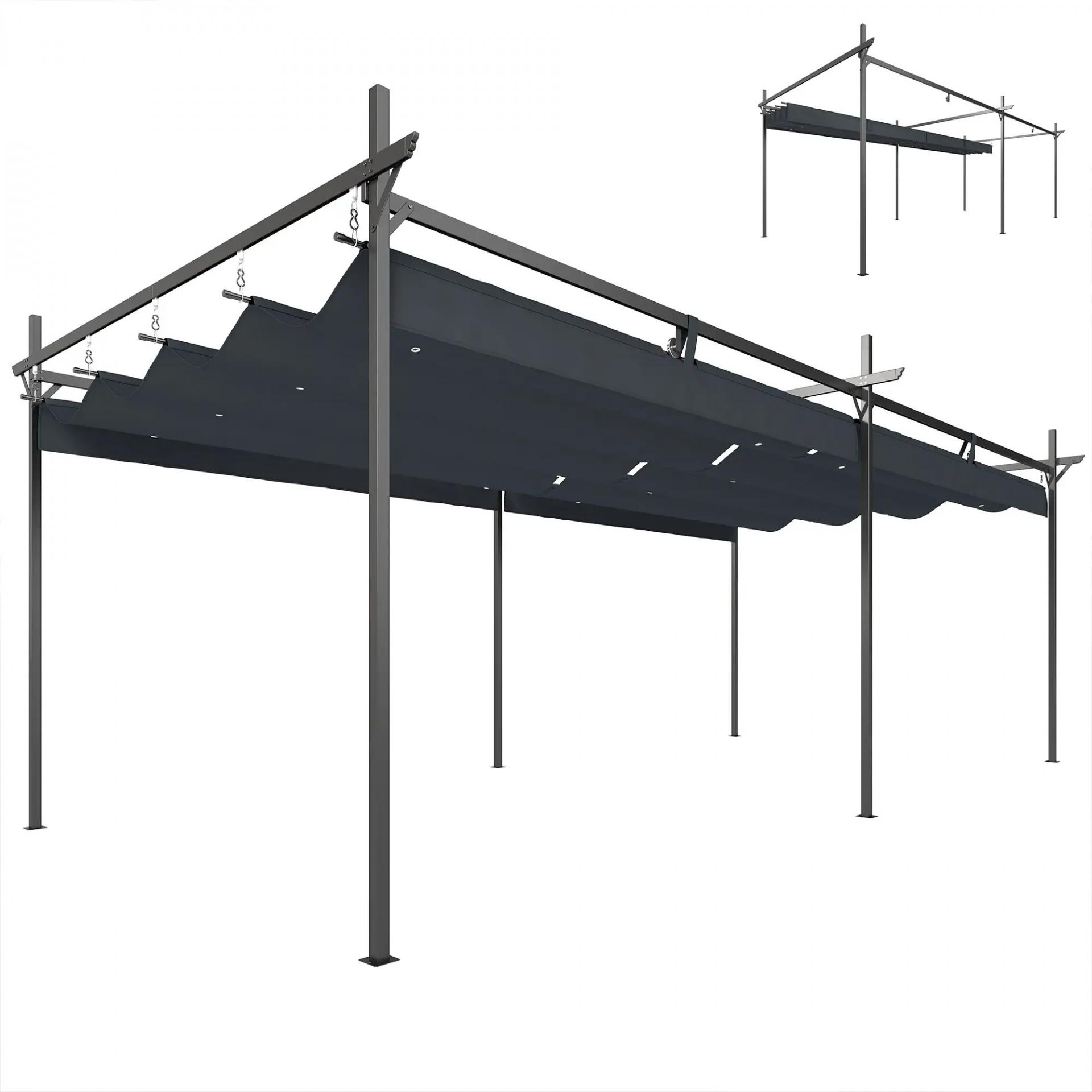 Pérgola de Jardín 6x3 m Gazebo con Techo Retráctil de Poliéster Resistente a los Rayos UV Gris Oscuro