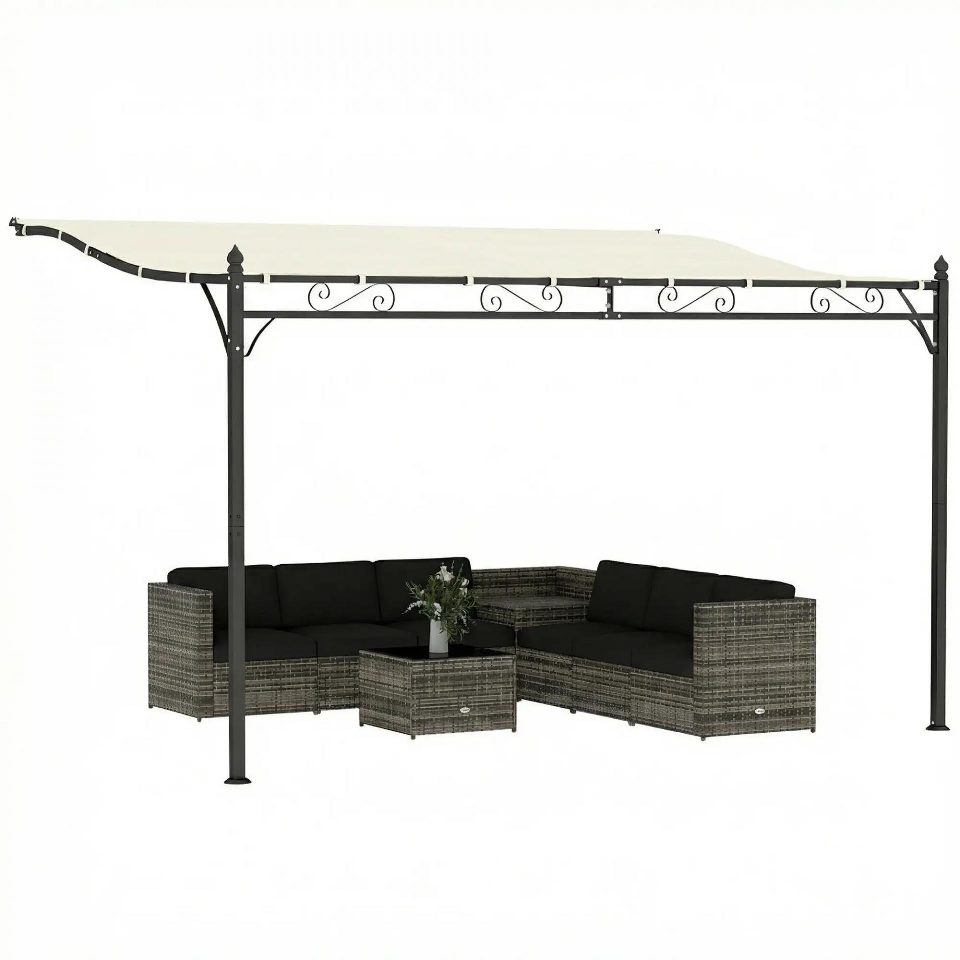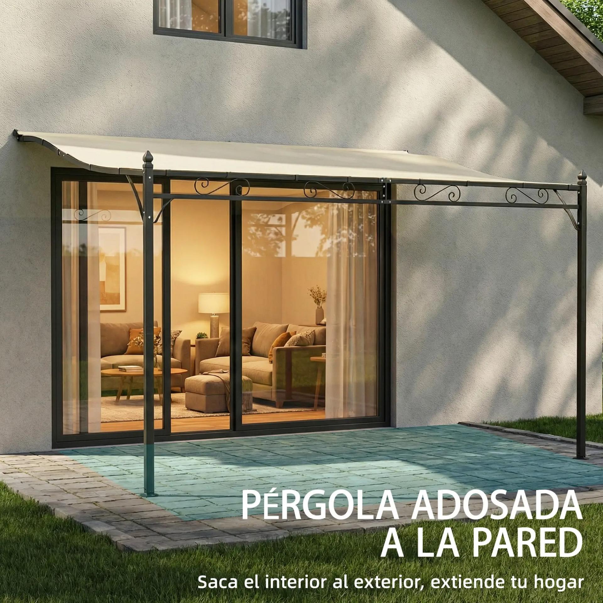 Pérgola de Pared 2,5x3,5 m con Techo Inclinado Orificios de Drenaje y Estructura Metálica Blanco Crema