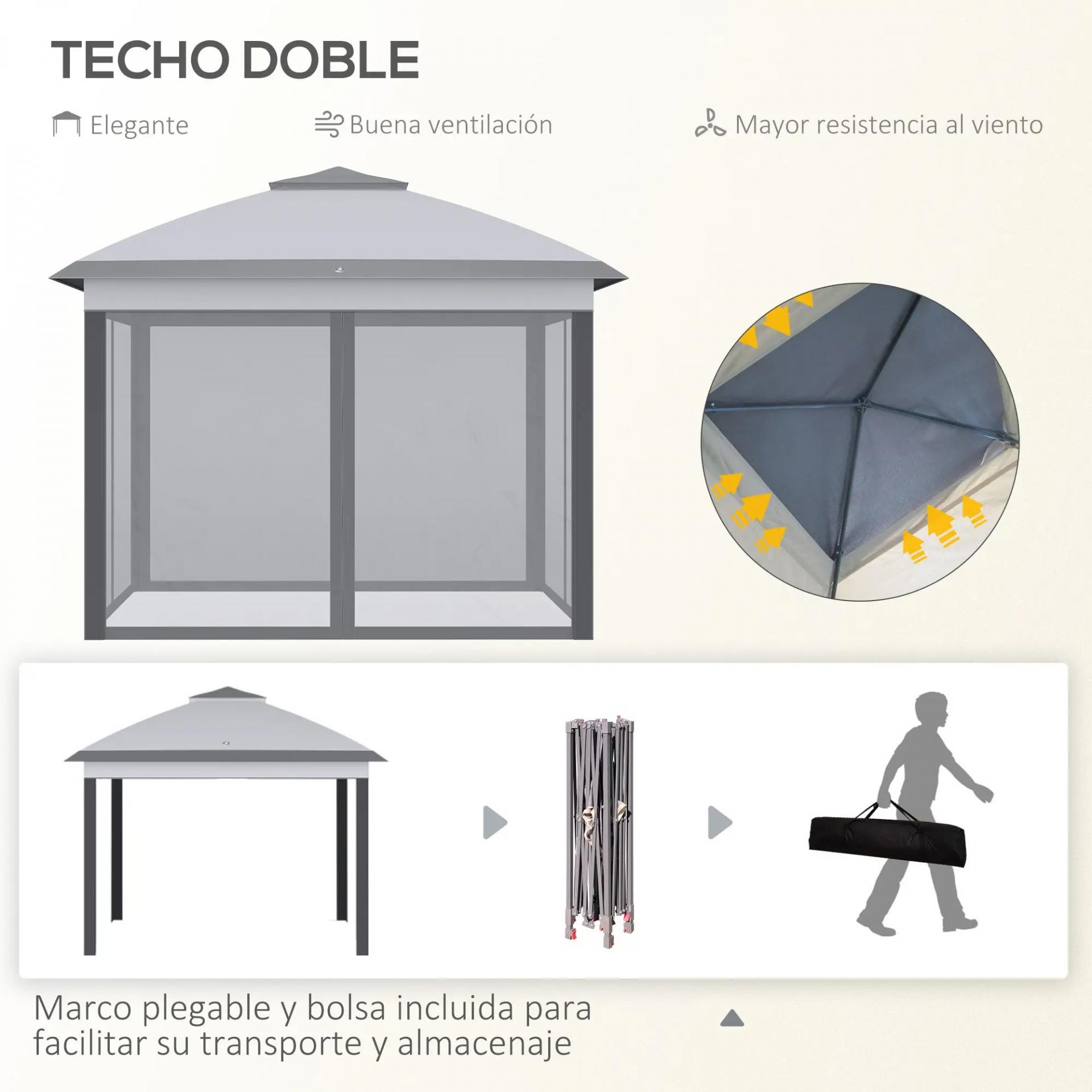 - 10,8 M² DE SOMBRA: Cenador plegable de doble techo diseñado para proporcionar un flujo de aire y un espacio práctico en el que refugiarse del sol para relajarse, tomar una copa con los amigos o charlar con la familia. Cuenta con una estructura extendida alrededor de los aleros, lo que proporciona una cobertura de sombra de más de 10,8 m²