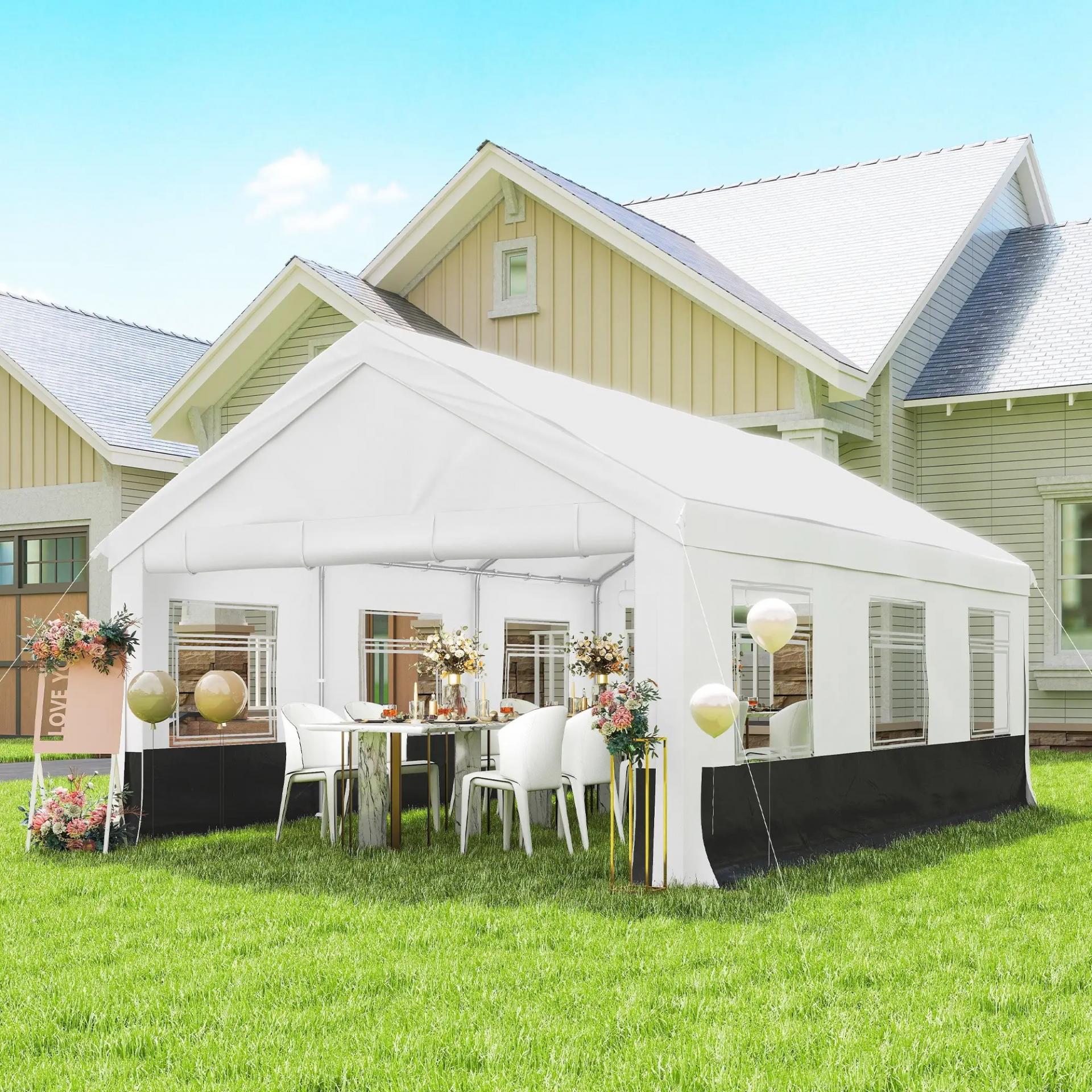- - 6 VENTANAS PANORÁMICAS FIJAS: Esta carpa para fiestas tiene paneles laterales con seis ventanas de plástico transparente (106x95 cm) que permiten el paso de luz natural y mejoran la sensación de amplitud, mientras protegen frente a brisa y lluvia ligera