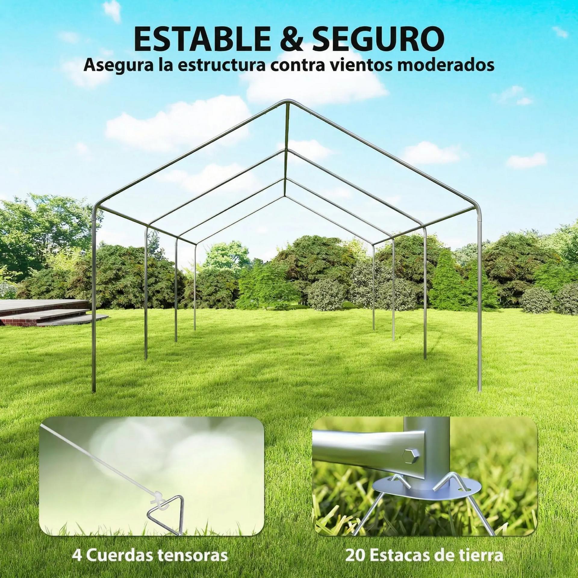 - - CUBIERTA DE PE 170G CON PROTECCIÓN UV: Techo de polietileno con protección UPF30+ adecuado para proteger del sol y lluvia ligera. Esta carpa de jardín incluye 20 estacas y 4 cuerdas tensoras. Uso recomendado temporal y siempre bien anclado