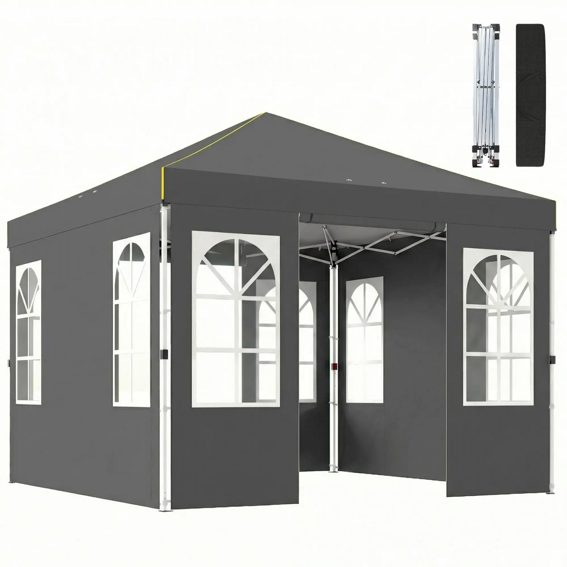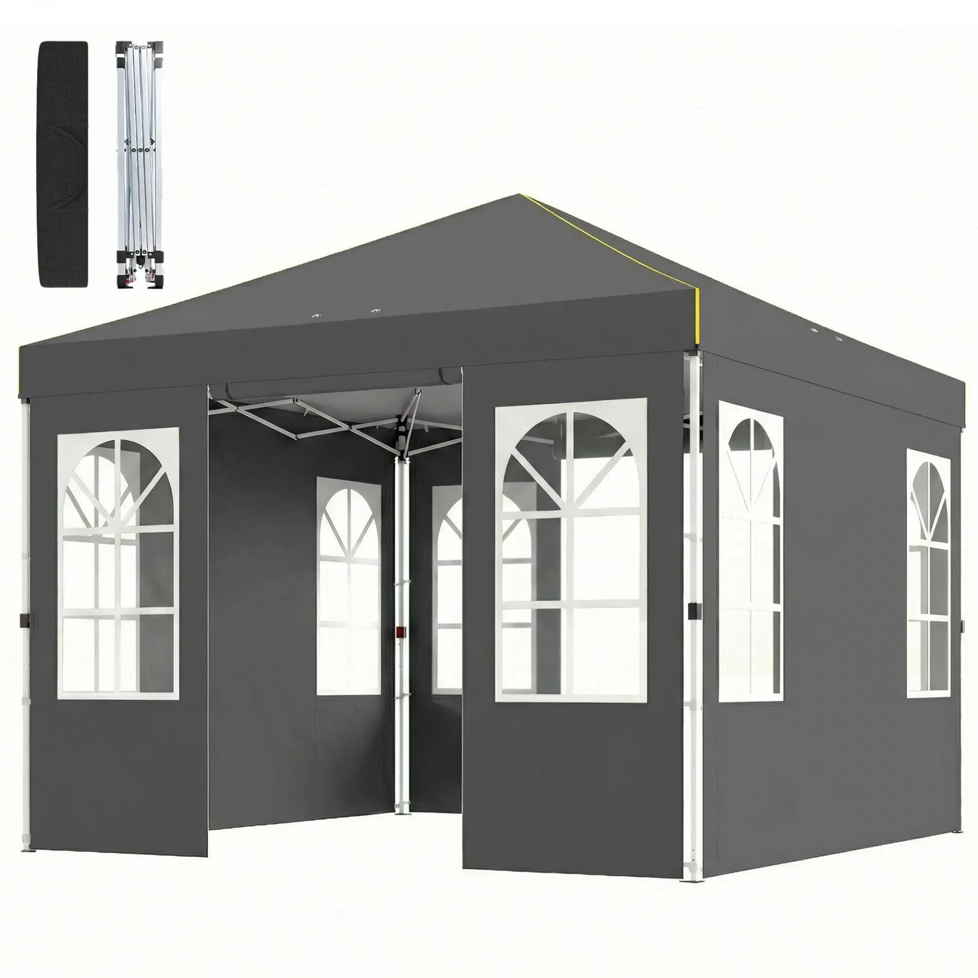 Carpa Plegable 3x3 m Pop-up con UPF50+ 4 Laterales Desmontables Altura Ajustable y Bolsa de Transporte Gris Oscuro