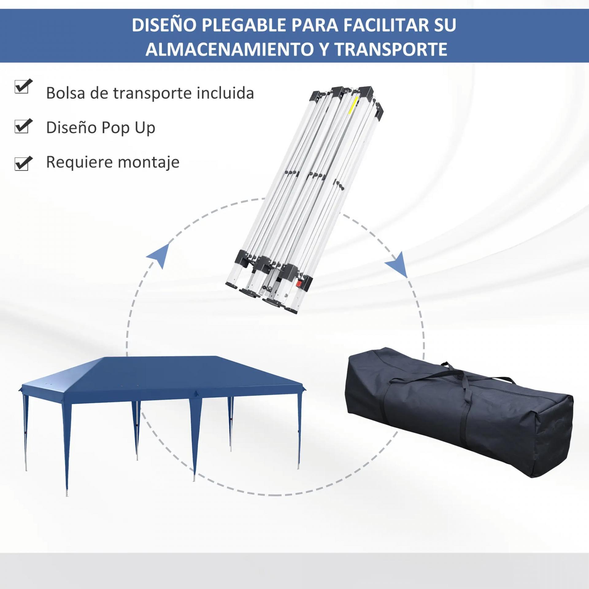 - PLEGABLE Y FÁCIL DE MONTAR: Gracias a su diseño plegable, ahorrarás tiempo en el montaje. Tu cenador plegable estará lista en cuestión de minutos. Eso sí, para facilitar su instalación, es recomendable hacerlo entre 2-3 personas