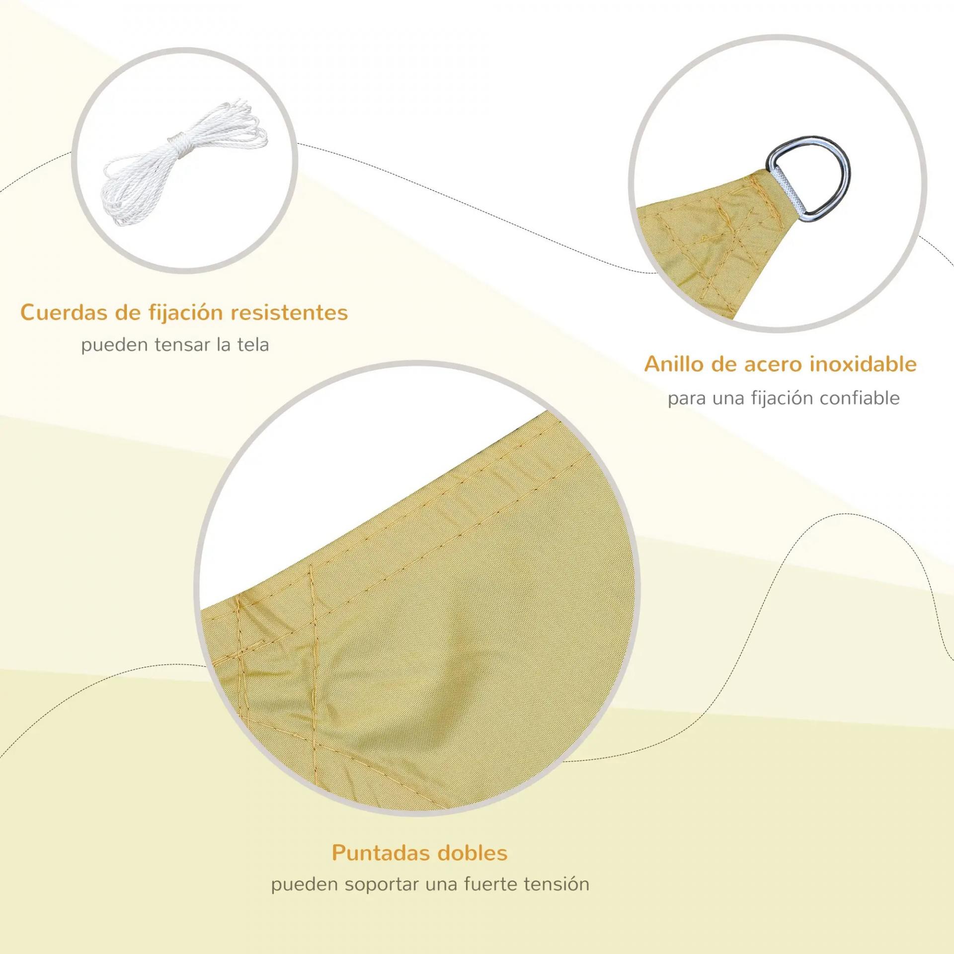 Toldo Vela Rectangular 6x4 m Vela de Sombra para Jardín Patio Terraza Poliéster Anti UV Color Arena