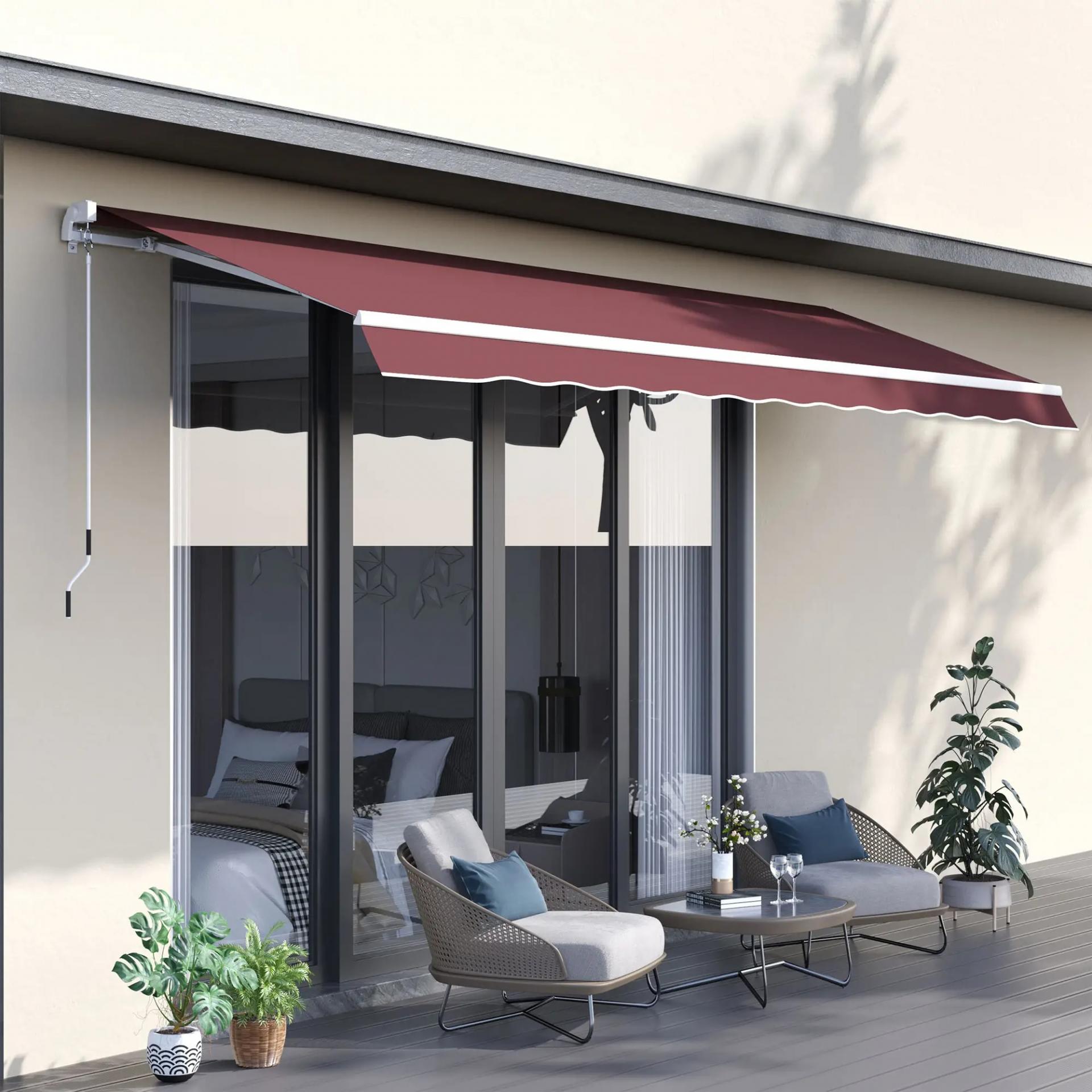 Toldo Retráctil Manual 3,5x2,5 m con Ángulo Ajustable Manivela Estructura de Aluminio y Protección UPF30+ Rojo Vino