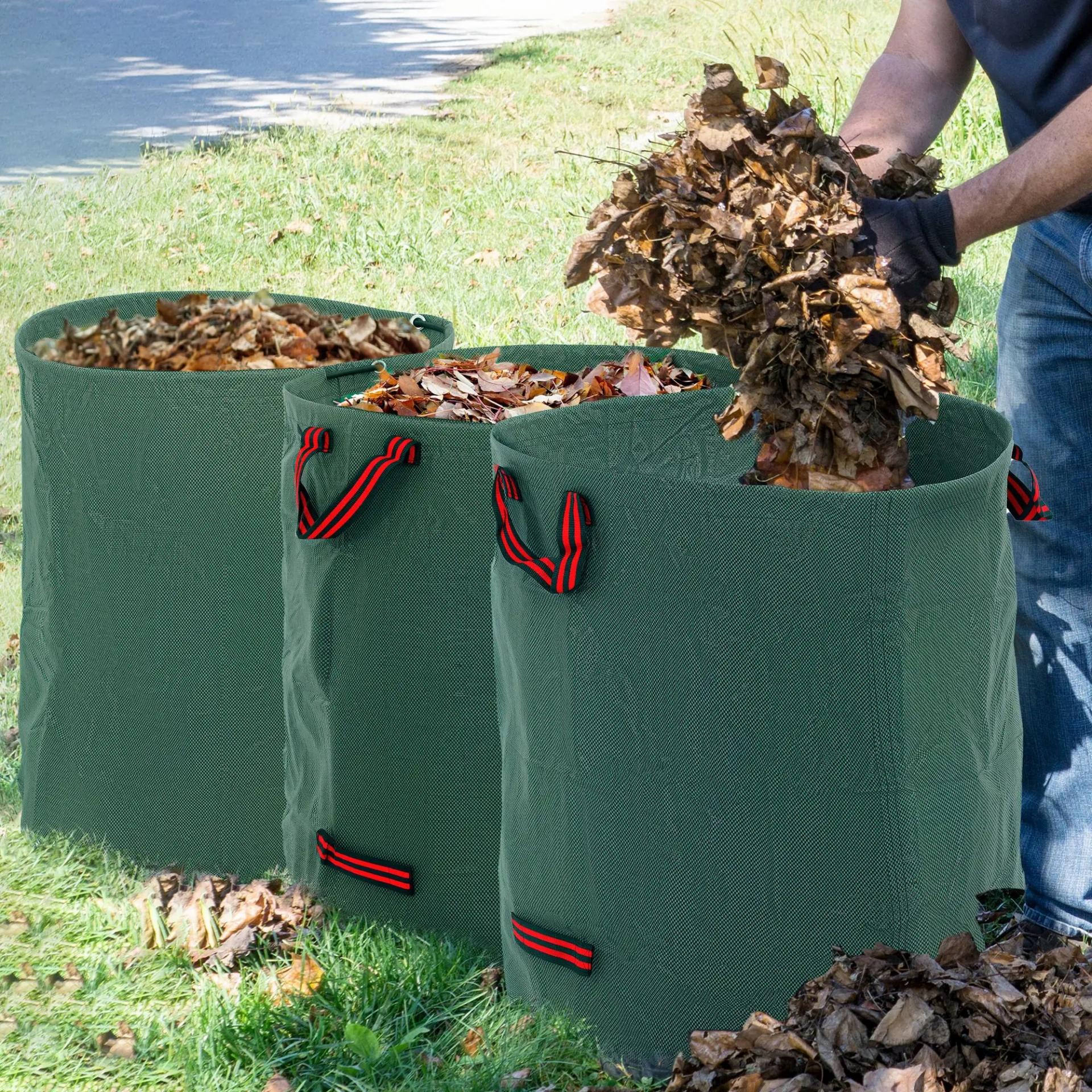Set de 3 Bolsas de Basura de Jardín 272L con Asas Reforzadas y Aros Flexibles Plegables y Reutilizables