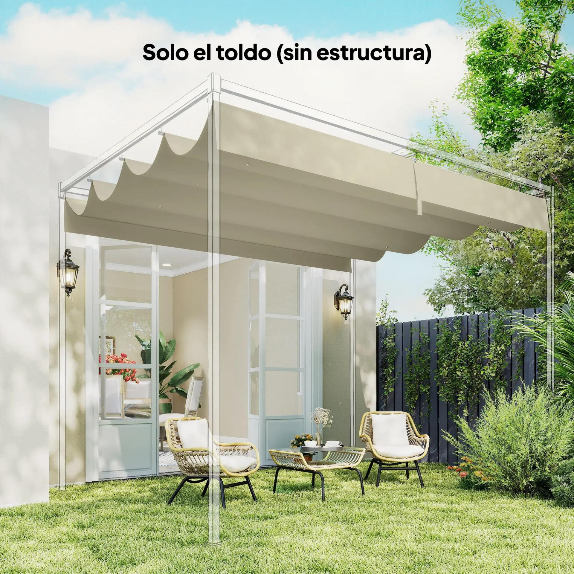 - ESPECIFICACIÓN DEL DOSSEL: Cubierta de repuesto de para pérgolas 4 x 3 m (Outsunny serie 84C-175V01). Verifique tamaño y modelo antes de comprar. Incluye bolsillos exclusivos para cinco barras