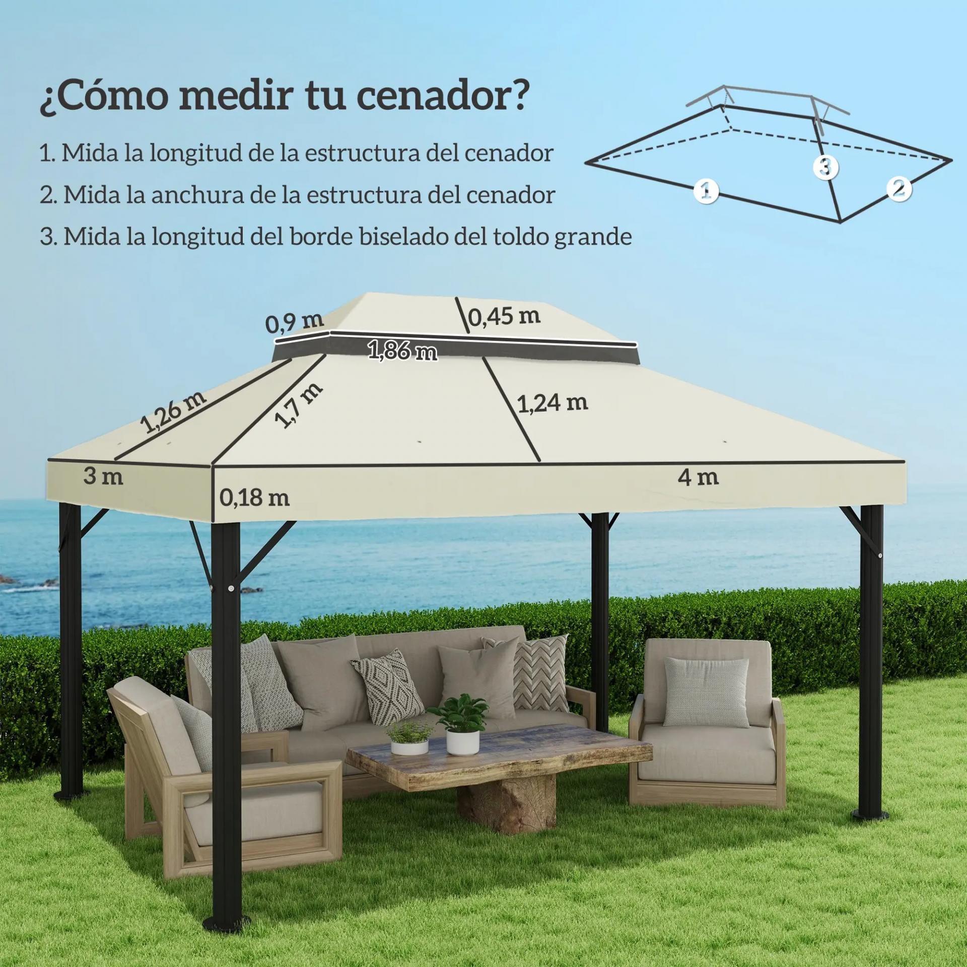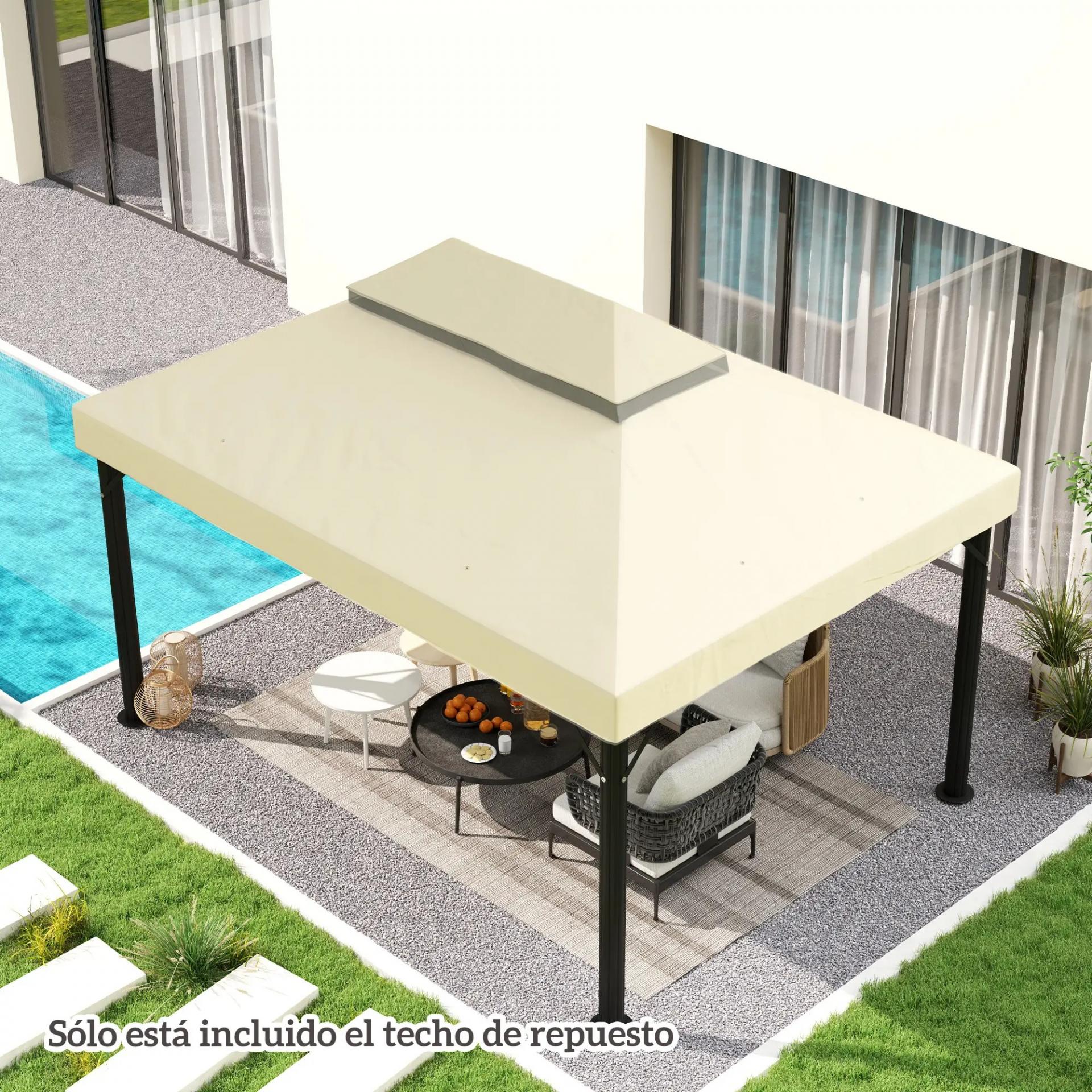 Toldo de Recambio 4x3 m con Techo Doble con Orificios de Drenaje y Protección UPF30+ Crema Solo Toldo NO Incluye Marco