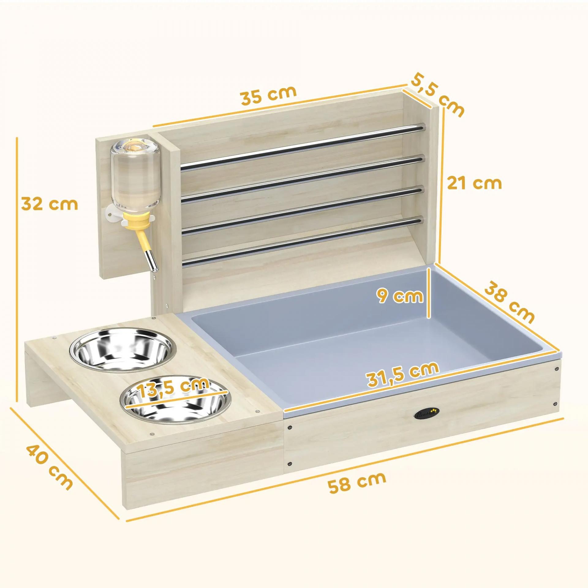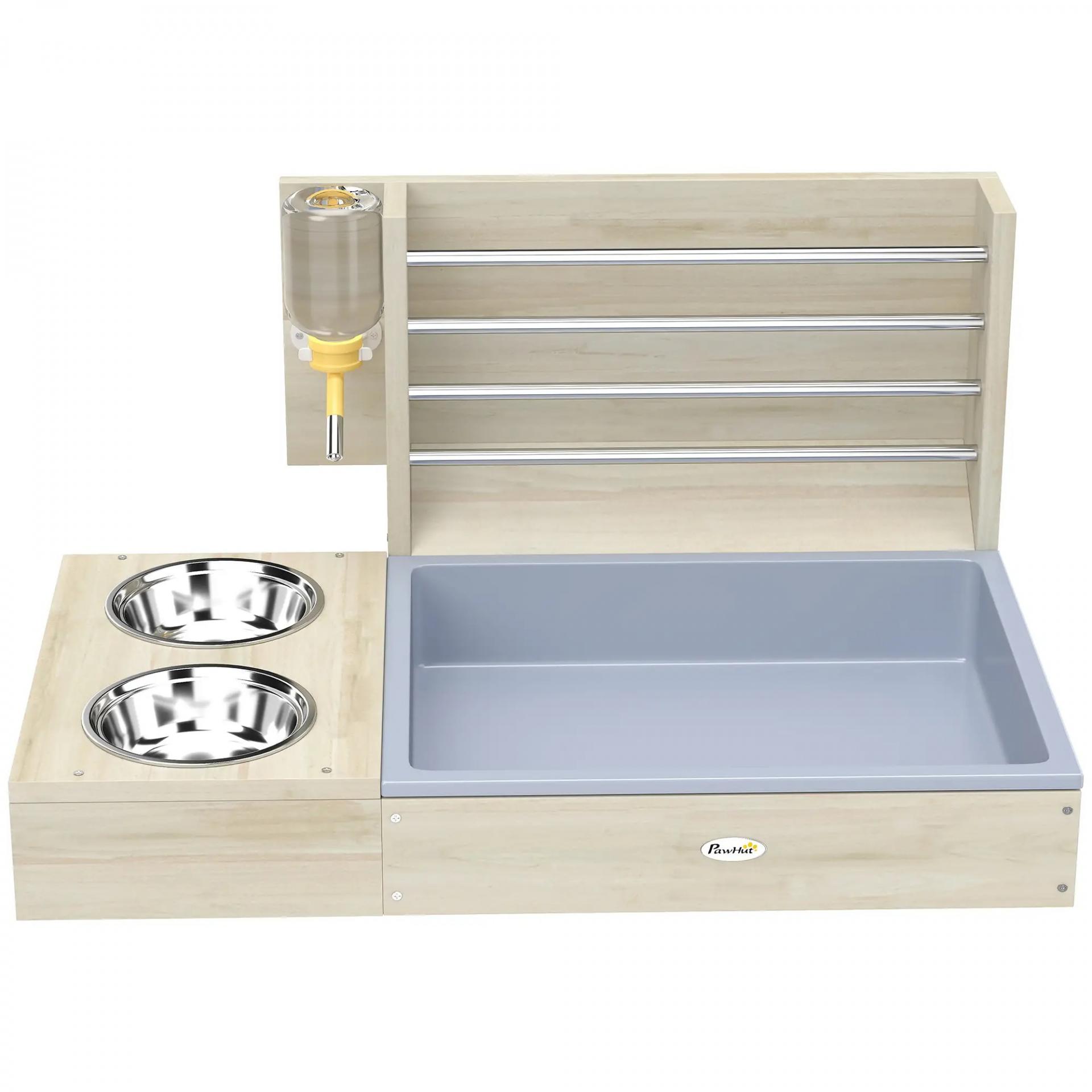 - - CONJUNTO COMPLETO DE ACCESORIOS: Incluye un cuenco de acero inoxidable, una botella de agua de 150 ml, un porta heno metálico y una bandeja de plástico. Dos personas pueden montar este comedero para mascotas en solo 20 minutos, creando al instante un espacio cómodo y funcional para tu conejo