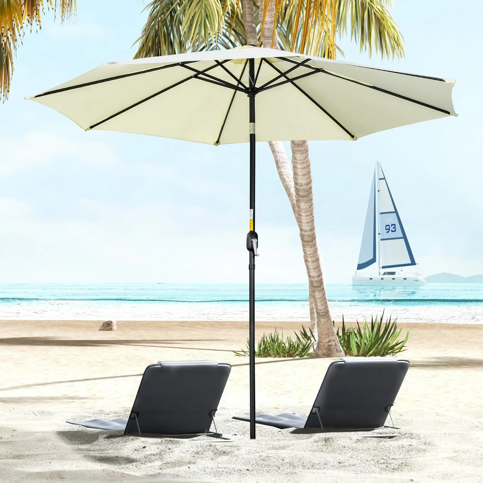 Sombrilla de Jardín Ø295x250 cm con Manivela Parasol Exterior con Mecanismo de Inclinación y Poste Desmontable Beige