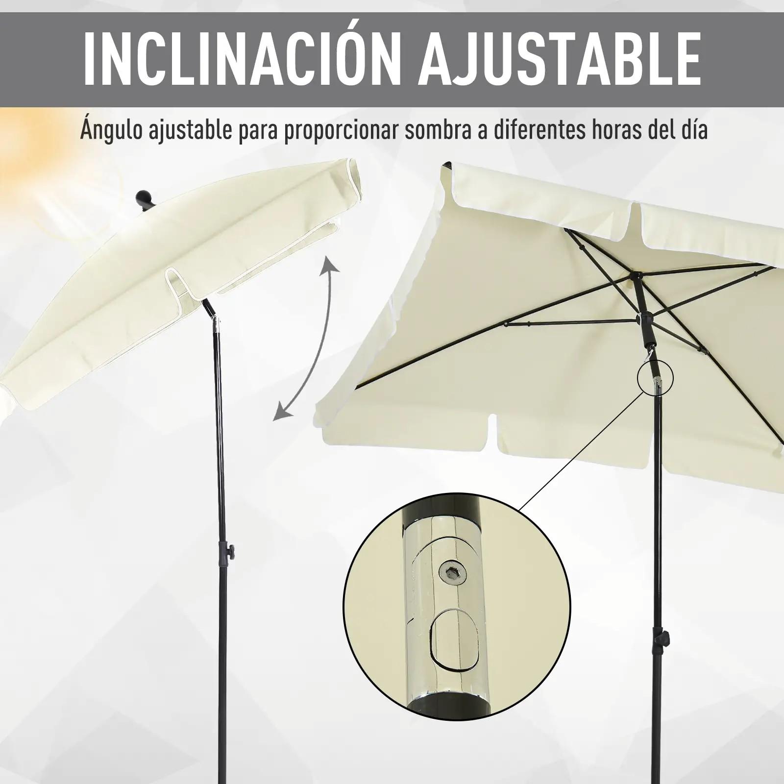 - - ÁNGULO AJUSTABLE: La parte superior del poste es reclinable, permitiendo el ajuste del toldo dependiendo de la incidencia de los rayos del sol para poder proporcionar sombra a cualquier hora del día