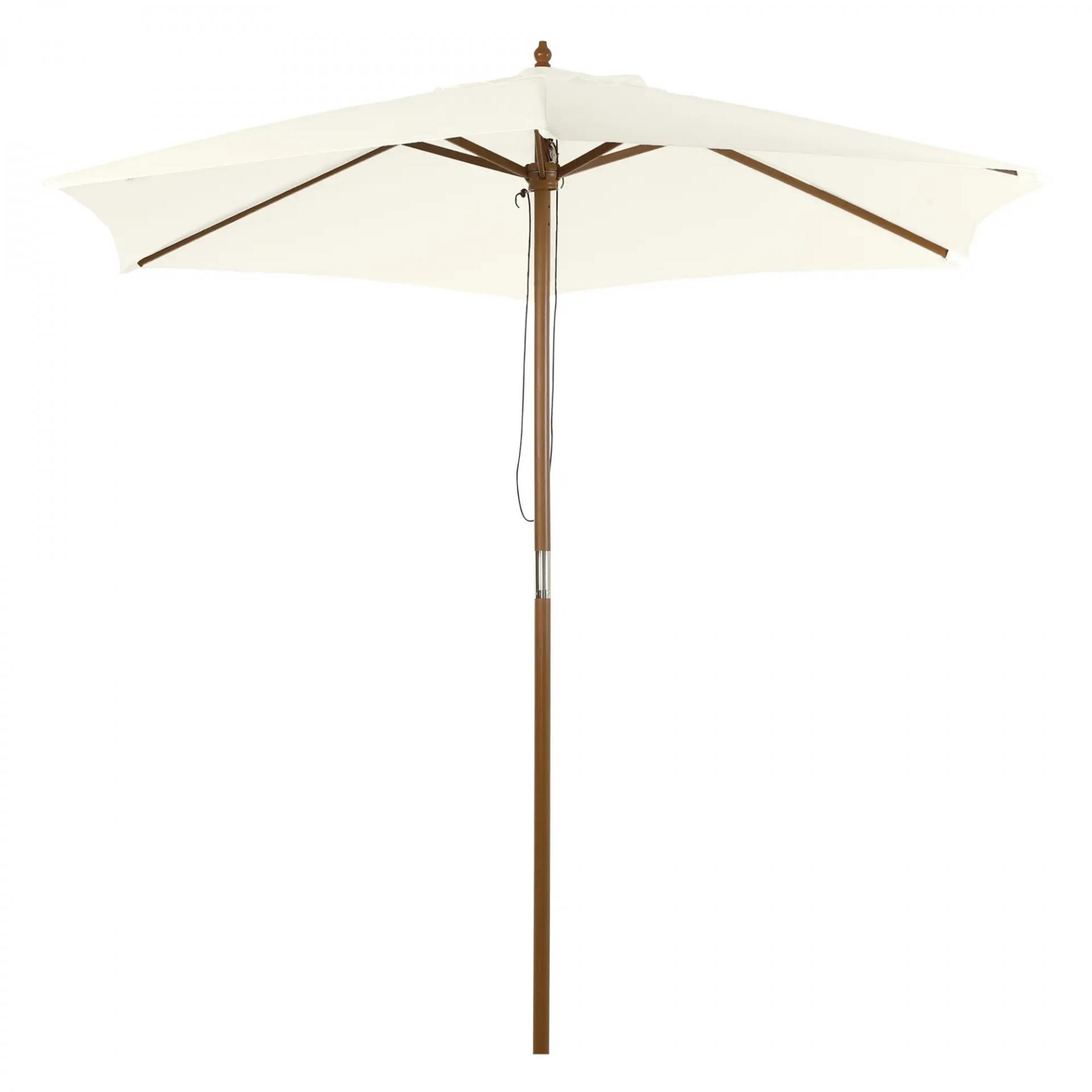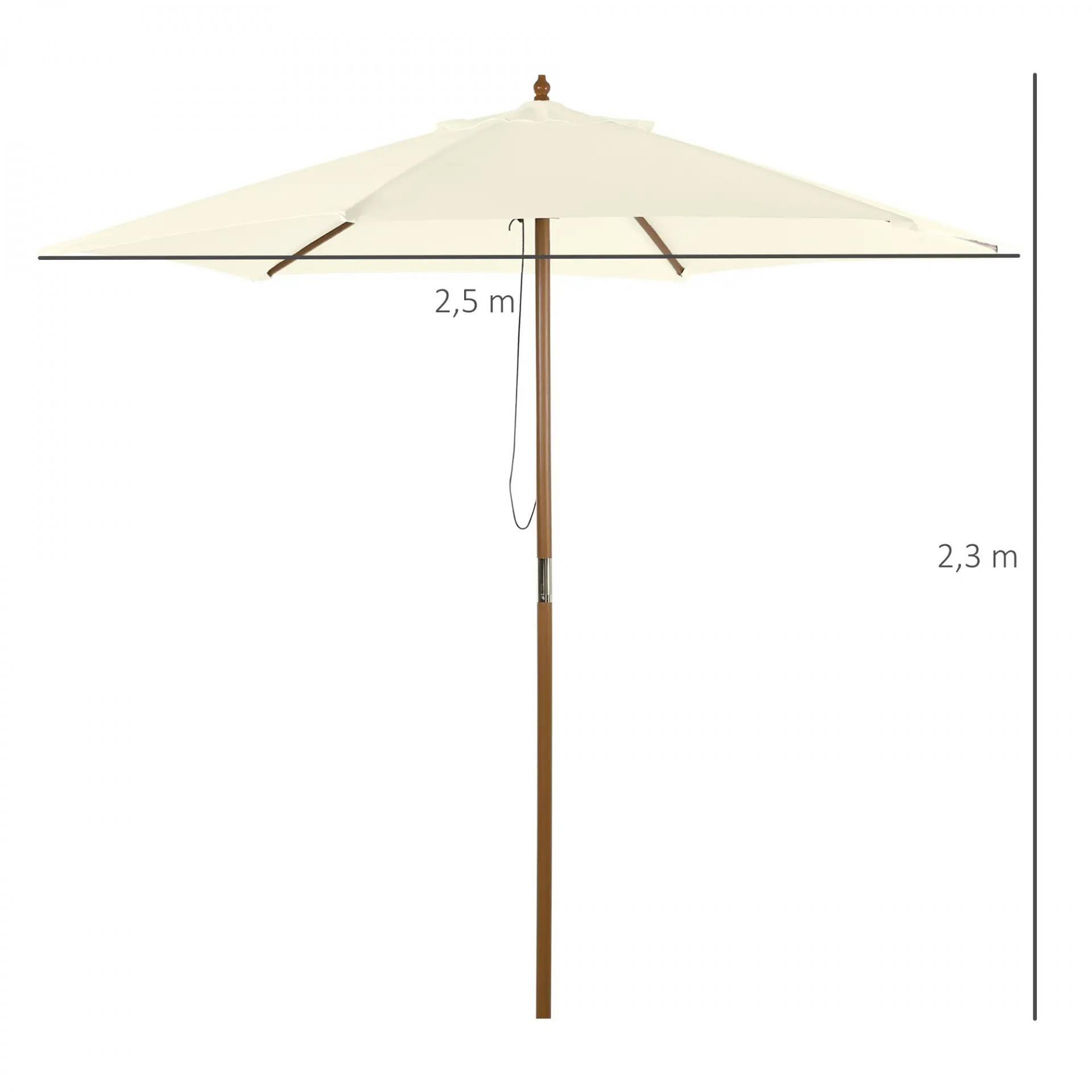 Sombrilla Parasol de Madera Ø250x230cm para Exterior con 6 Varillas Sistema de Polea Color Blanco