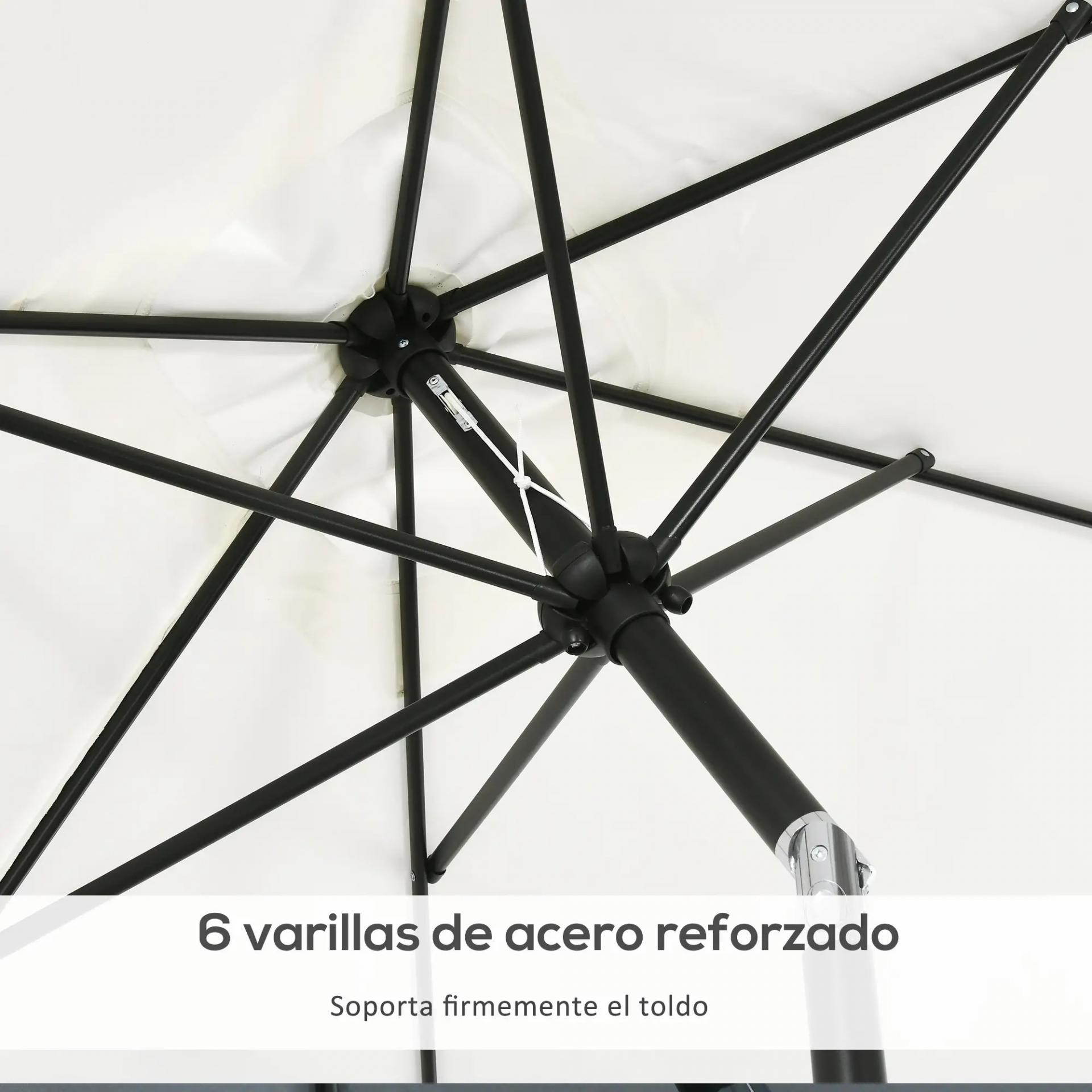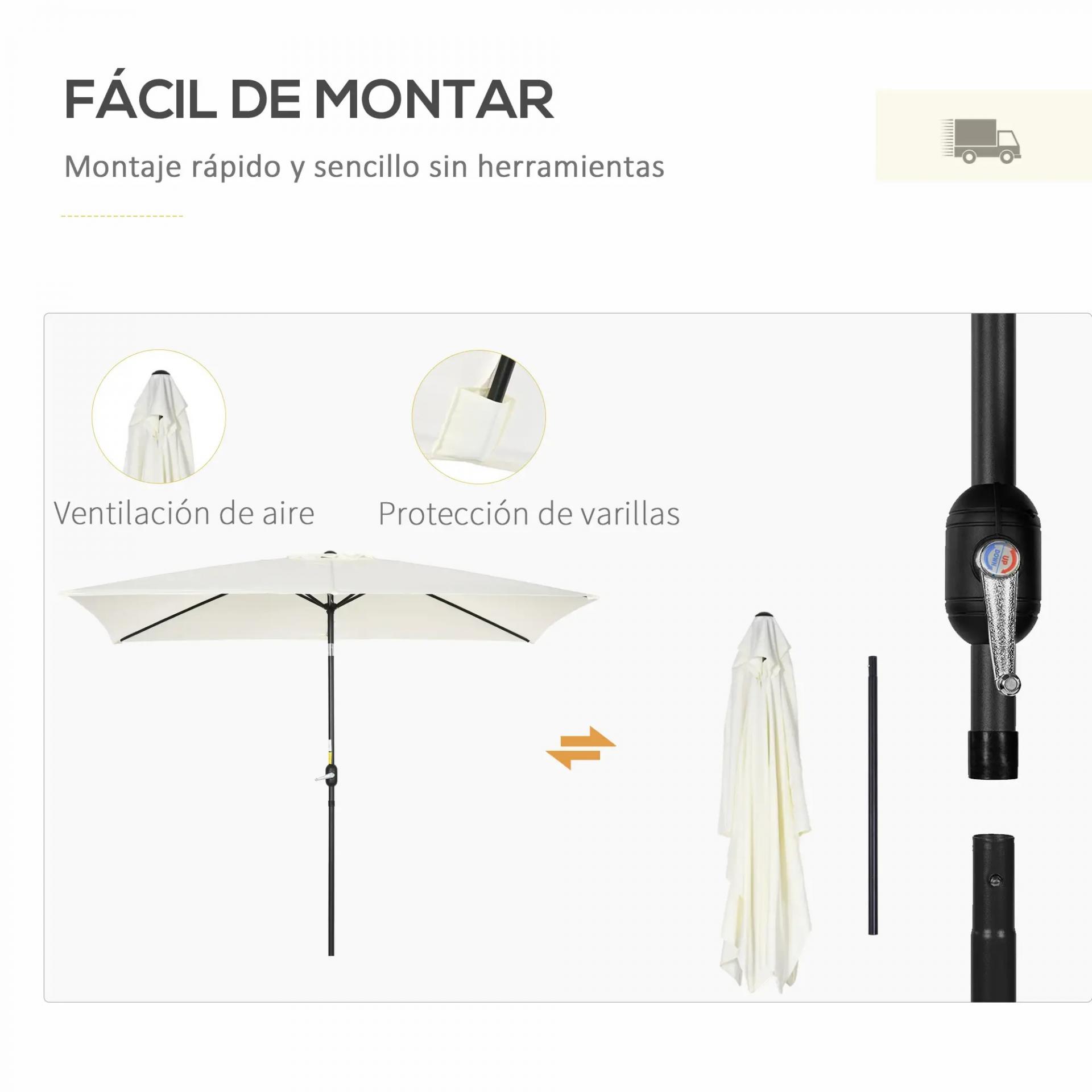 - - APERTURA MEDIANTE MANIVELA: Sombrilla de terraza exterior de medidas considerables que se abre y cierra fácilmente mediante la manivela que tiene en el propio mástil