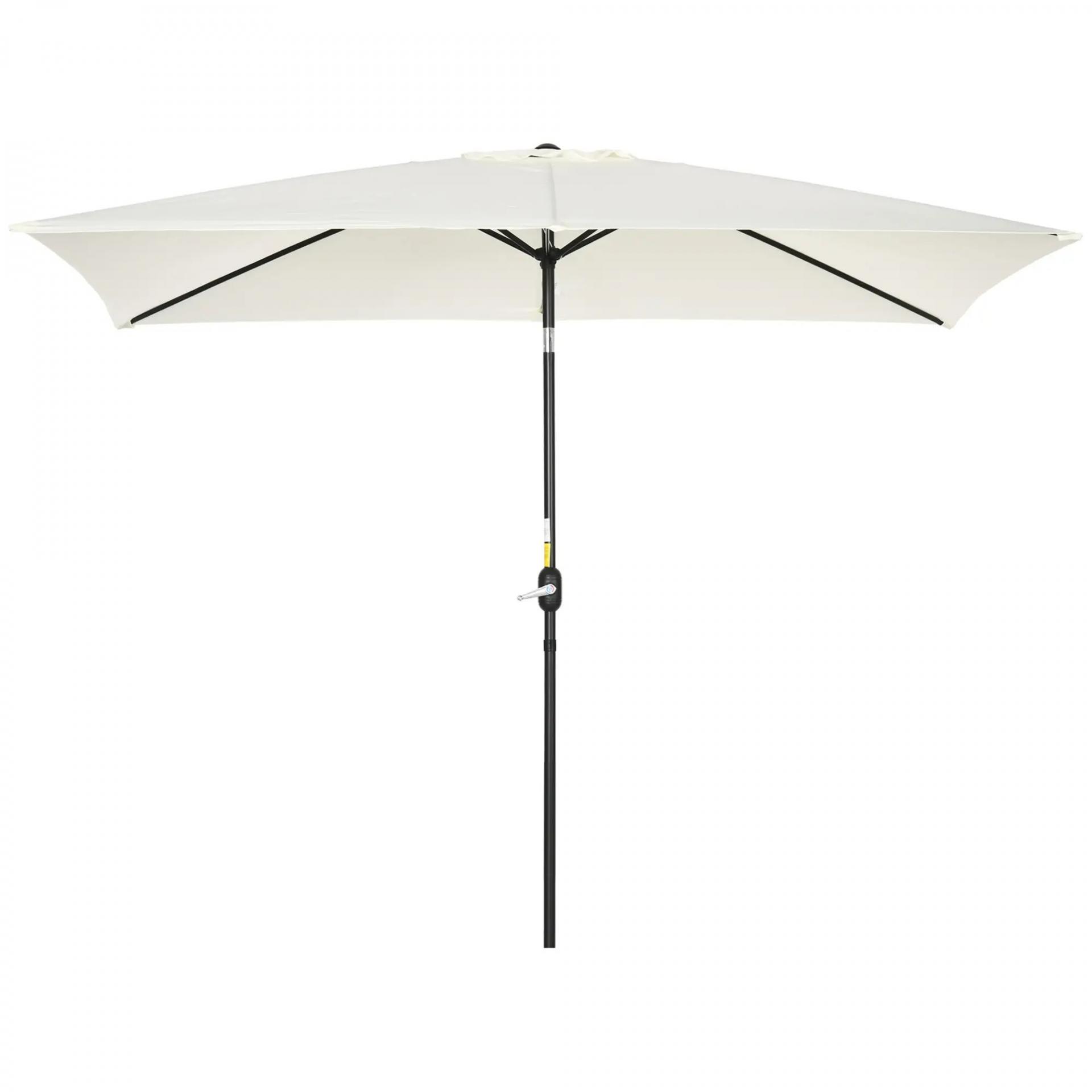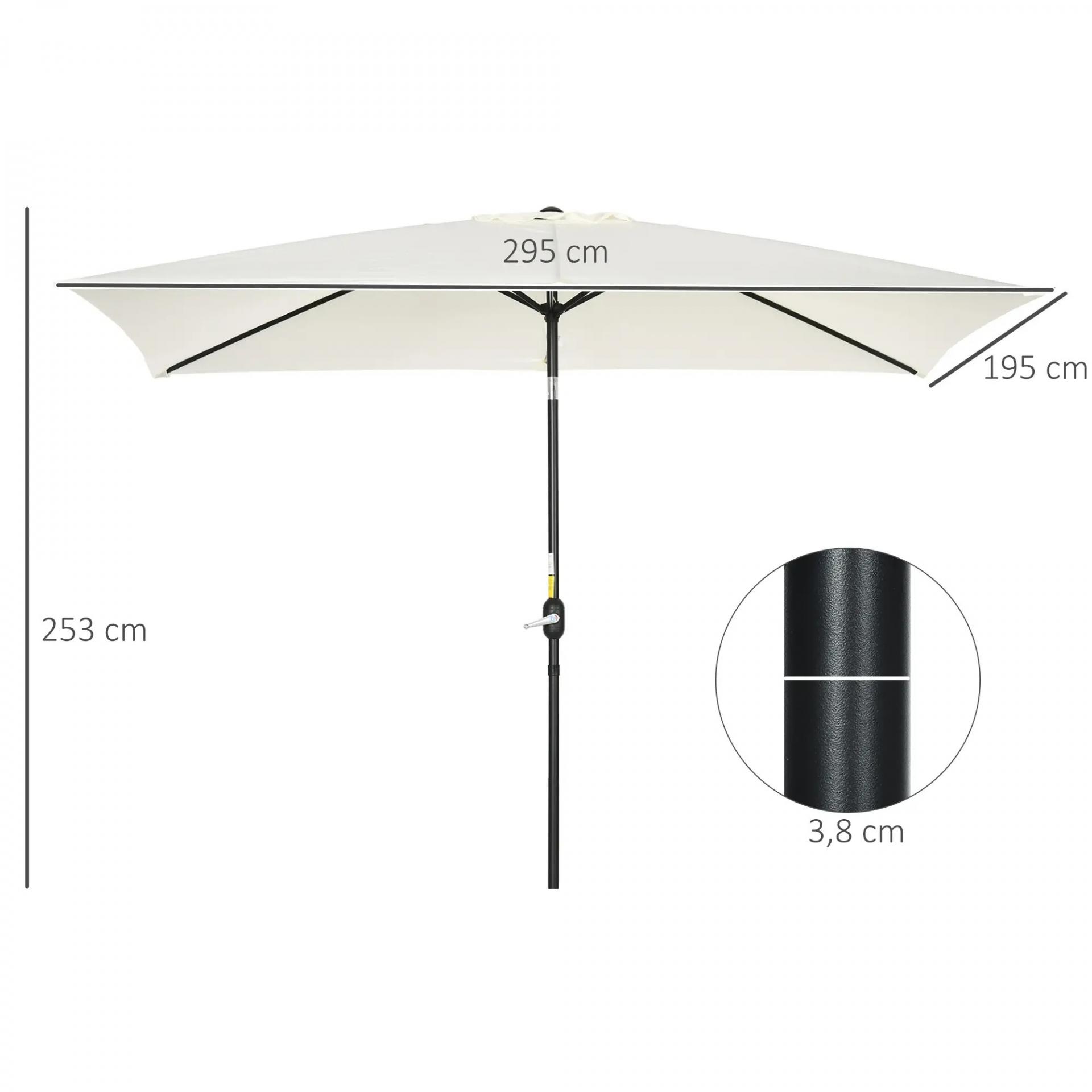 Sombrilla de Aluminio 200x300x253 cm Parasol Rectangular de Jardín Inclinable con Manivela y Poste Desmontable Crema