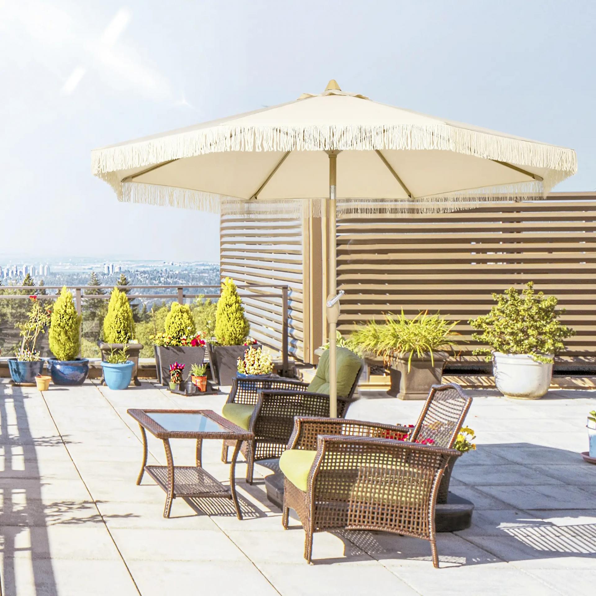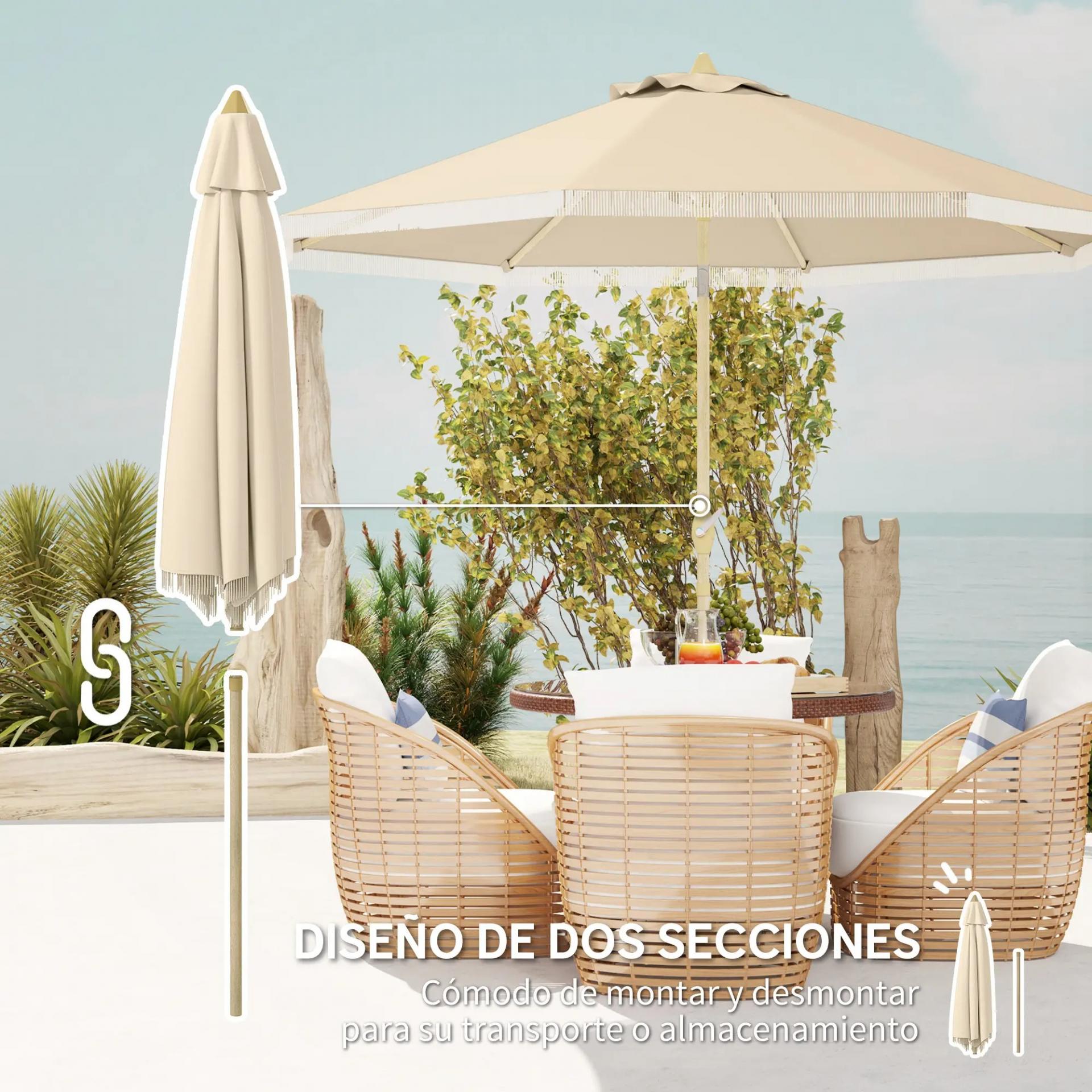 Sombrilla de Jardín Ø265x244 cm con Manivela Manual Ángulo Ajustable y Flecos de Estilo Boho para Terraza Piscina Crema
