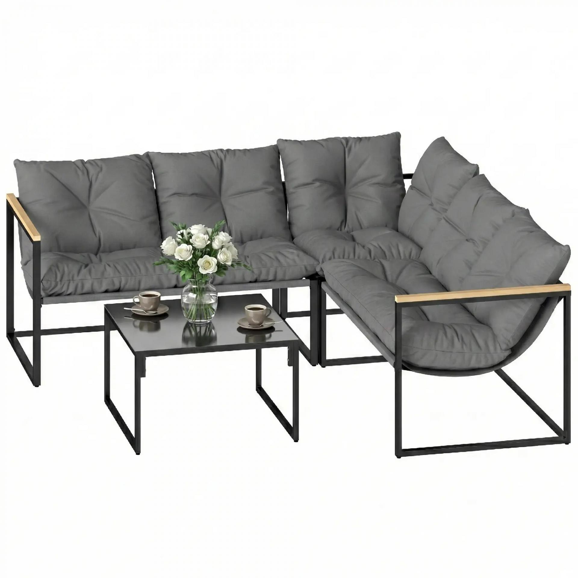 Conjunto de Jardín Exterior con Cojines Gruesos 2 Sofás de 2 Plazas Sofá de Esquina y Mesa de Centro de Vidrio Gris