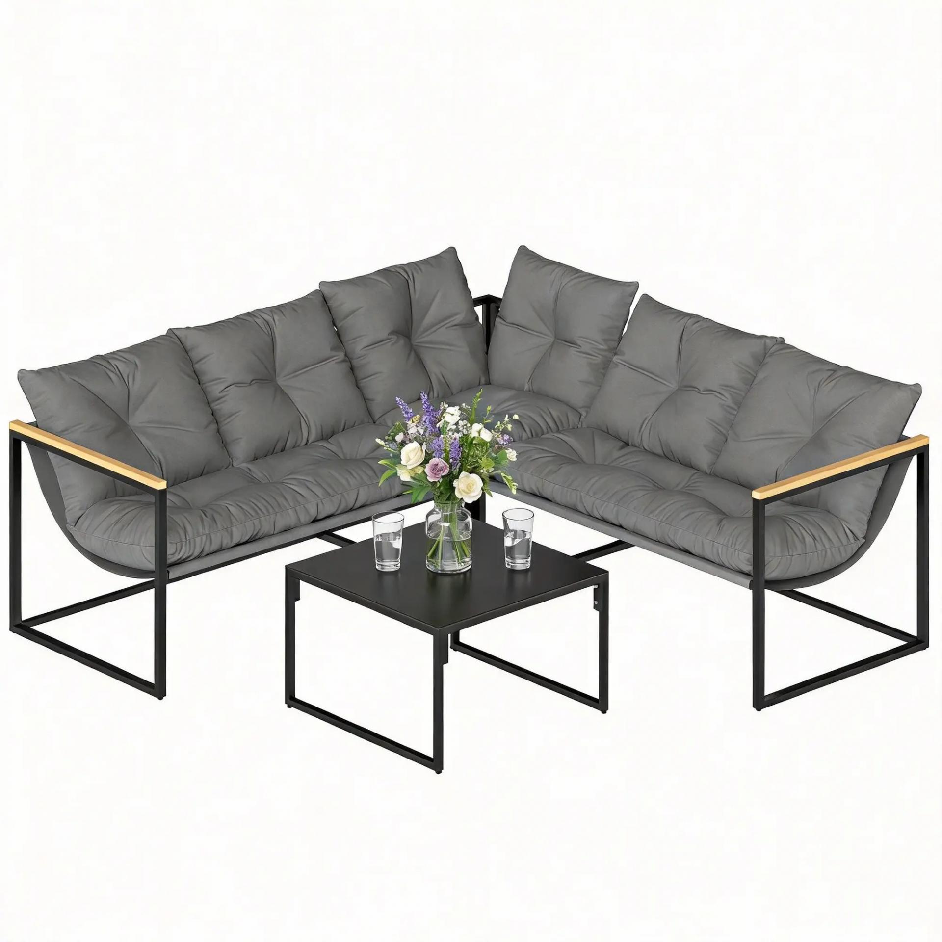 - - COJINES DE 10 CM PARA MÁXIMO CONFORT: El conjunto de jardín exterior incorpora 9 cojines acolchados con relleno de algodón PP y fundas de poliéster, ofreciendo un asiento mullido y cómodo para crear un rincón moderno y acogedor en exteriores