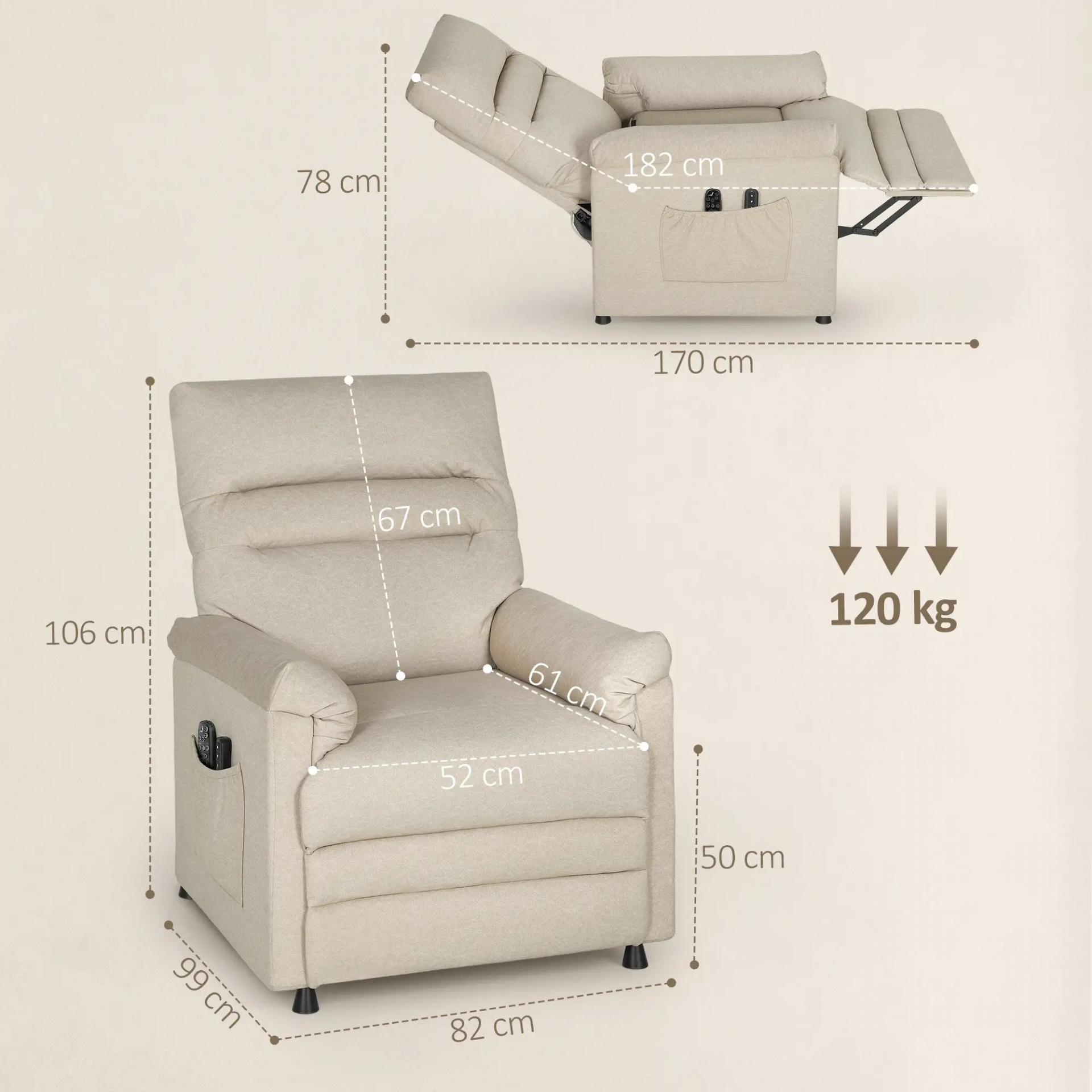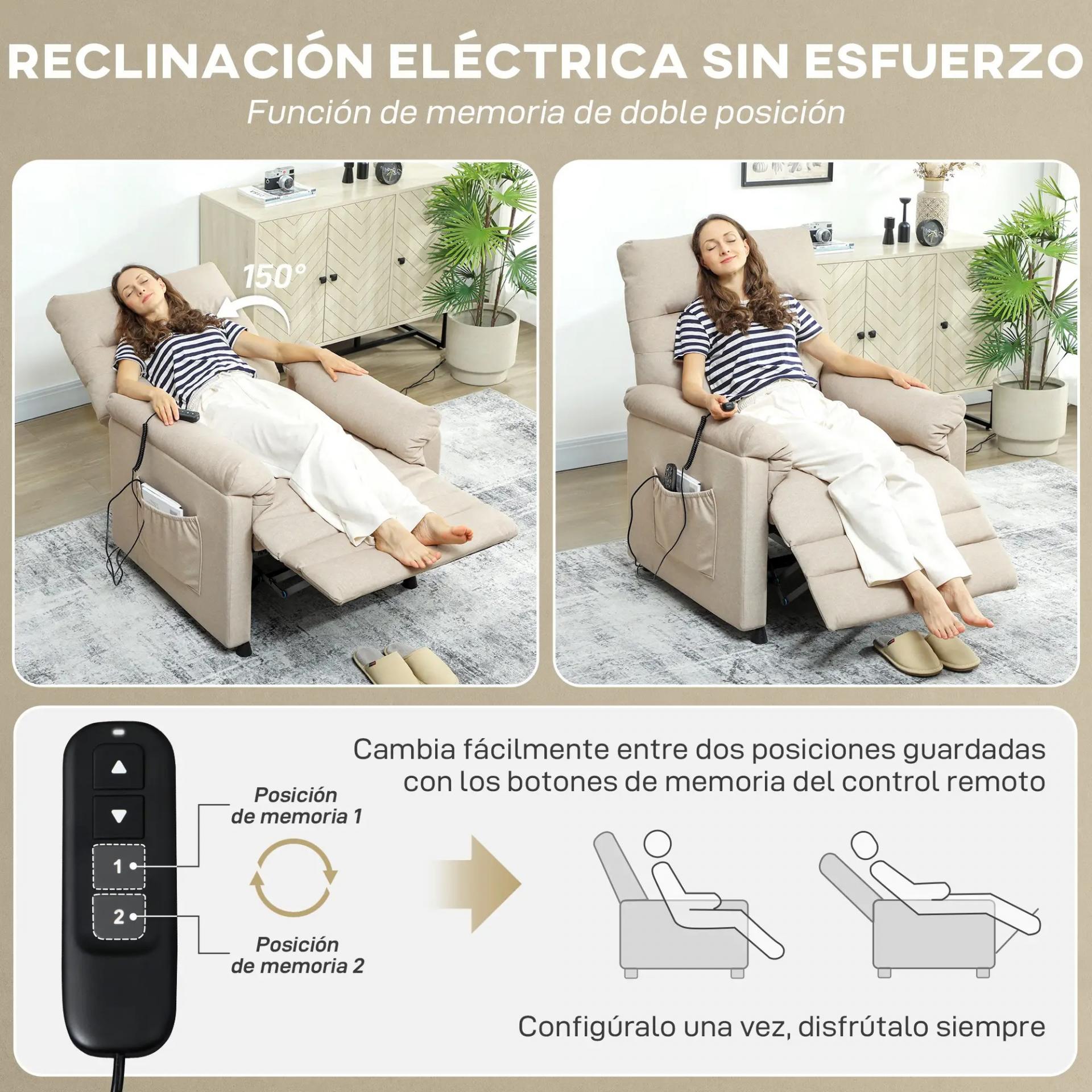 Sillón Relax Reclinable Eléctrico con Calor Lumbar Masaje Vibración Motor Silencioso Función de Memoria Beige
