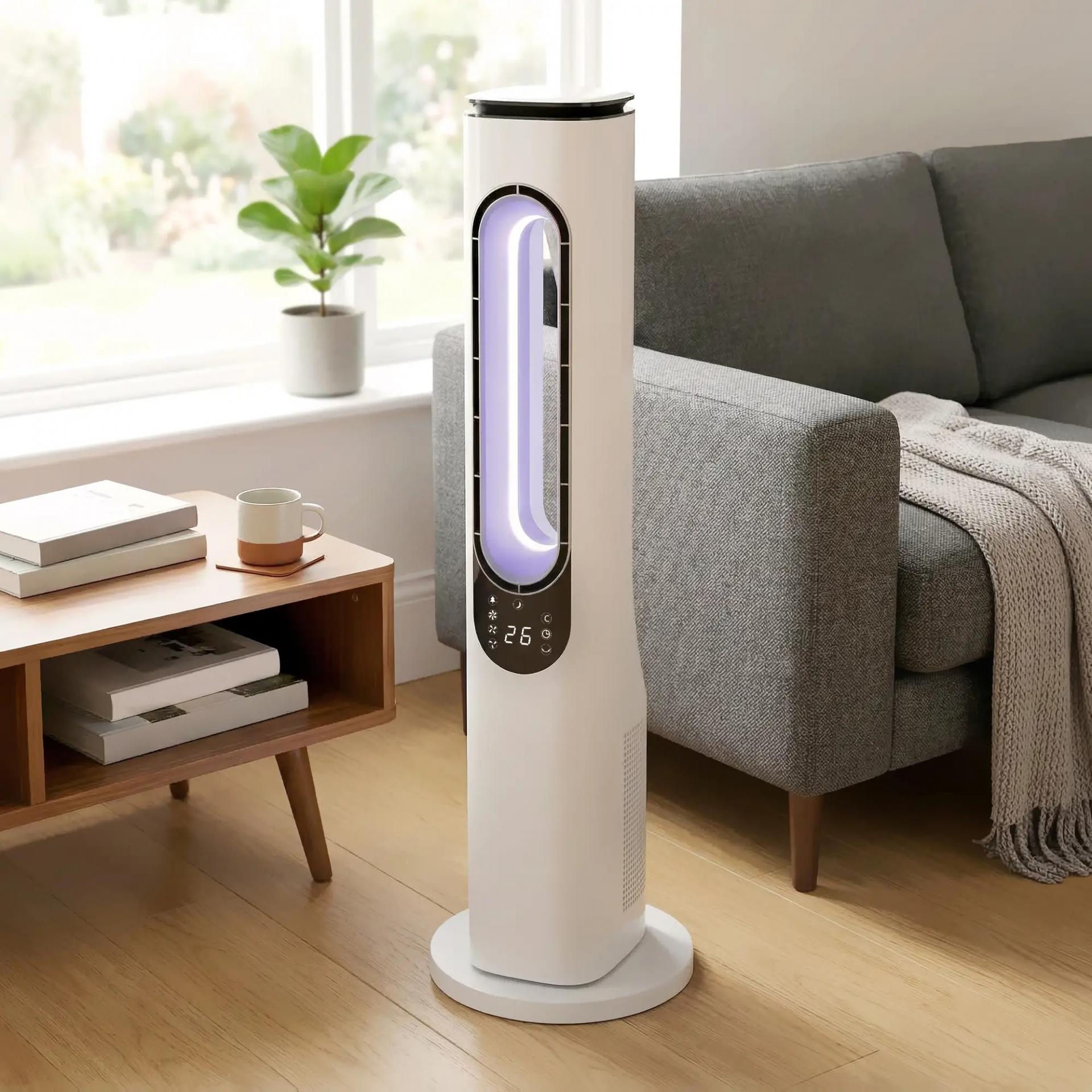 Ventilador de Torre sin Aspas con Luces LED Control Remoto 3 Velocidades 3 Modos Temporizador 15H Oscilación 50° Blanco