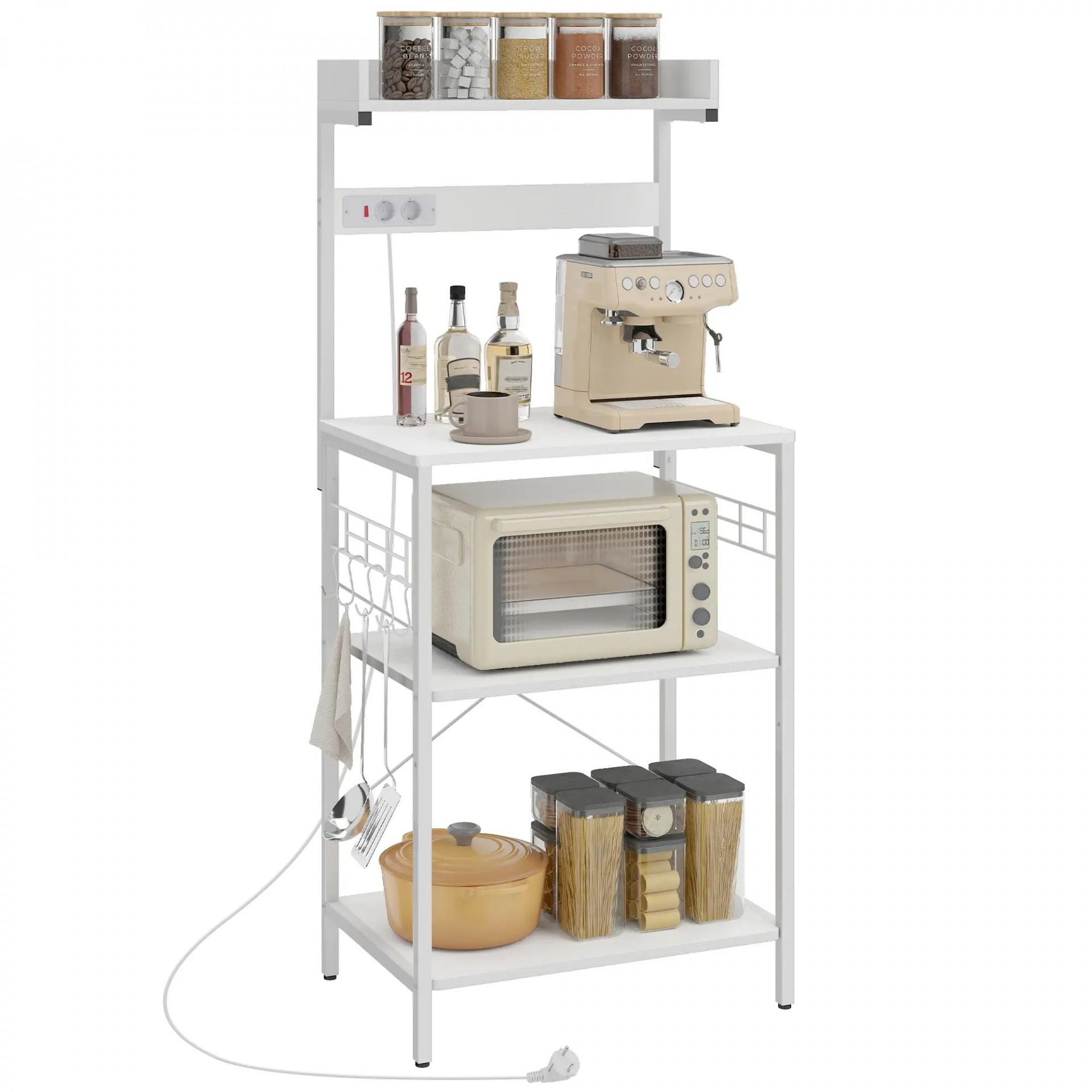 Estantería de Cocina con 2 Tomacorrientes Estante para Microondas Estante Ajustable Ganchos 60x42x137 cm Blanco