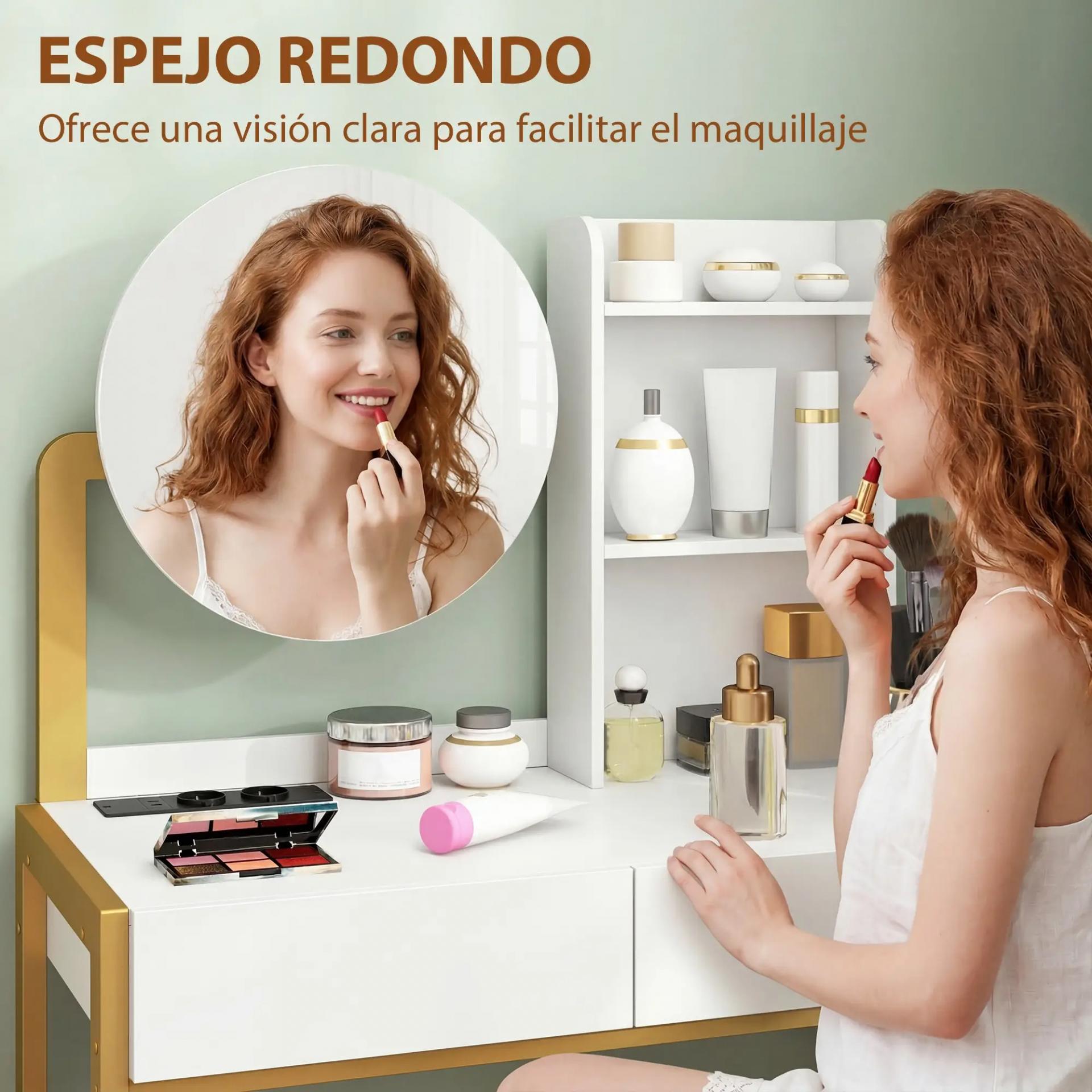 - - ESPEJO REDONDO Y CÓMODO: El espejo de 40x40 cm del tocador ofrece una vista clara y agradable para maquillarte, peinarte o seguir tu rutina facial con mayor comodidad, creando un rincón funcional y bien pensado para el día a día en el dormitorio o vestidor