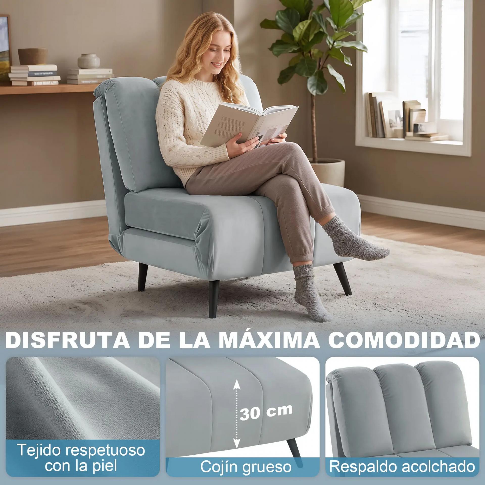 - - RESPALDO AJUSTABLE EN 3 POSICIONES: Ajusta el respaldo en tres ángulos (105°, 140° y 180°) para adaptarlo a diferentes momentos del día. Incluye patas metálicas ocultas que permiten convertir el sillón en una cama cómoda en pocos segundos