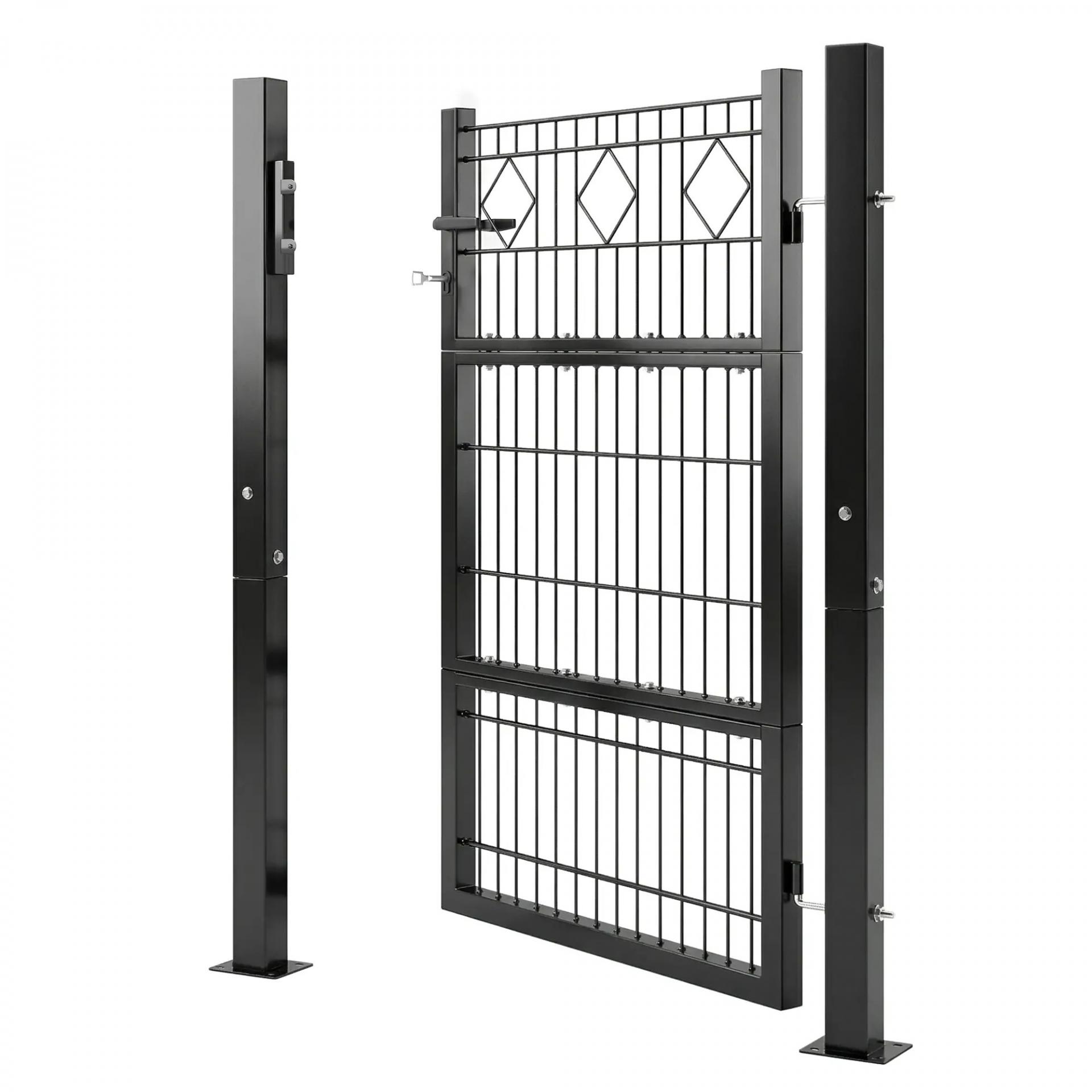 Puerta de Jardín 100 x 131 cm Puerta de Valla de Metal Galvanizado con Cerradura Llaves Manilla y 2 Postes Gris Oscuro
