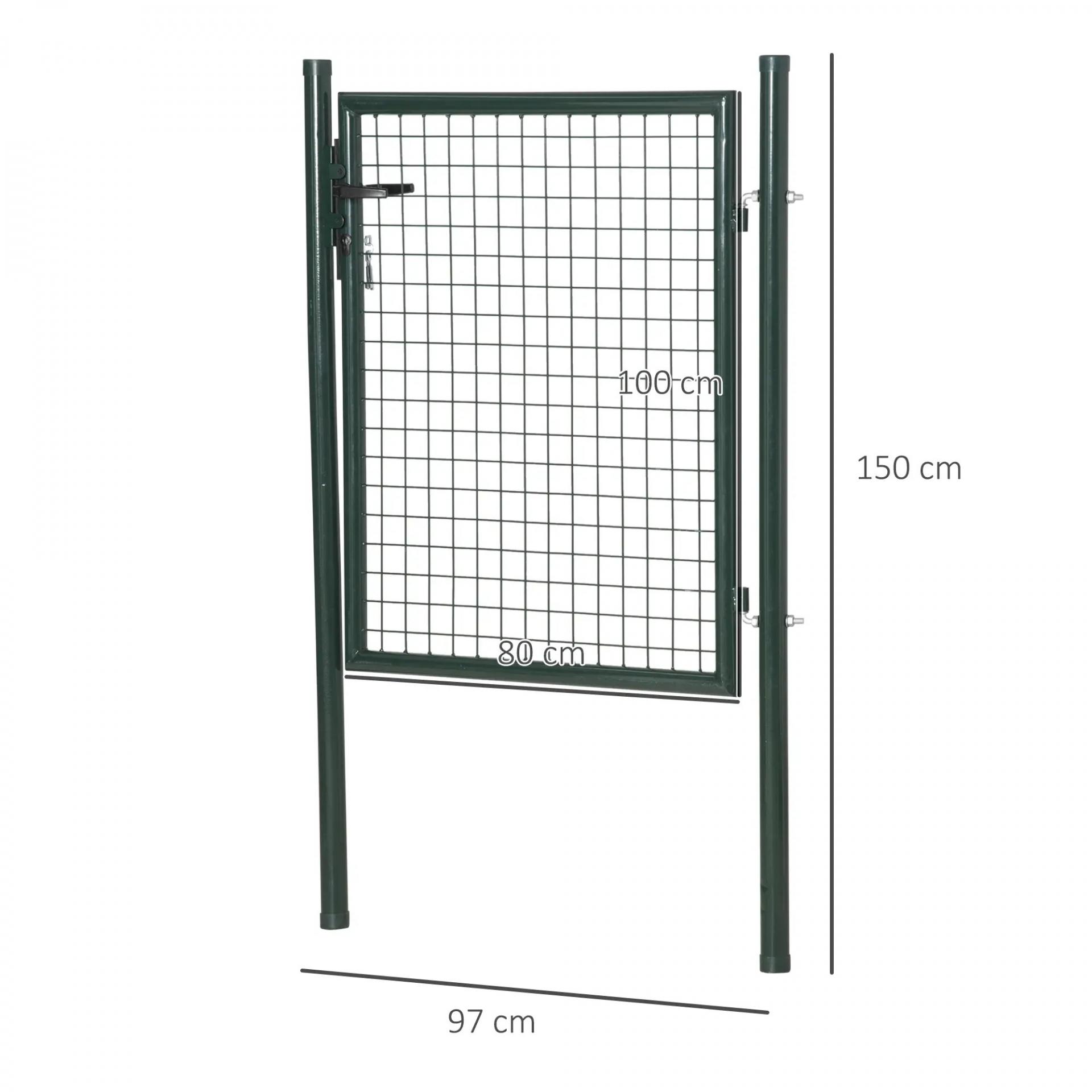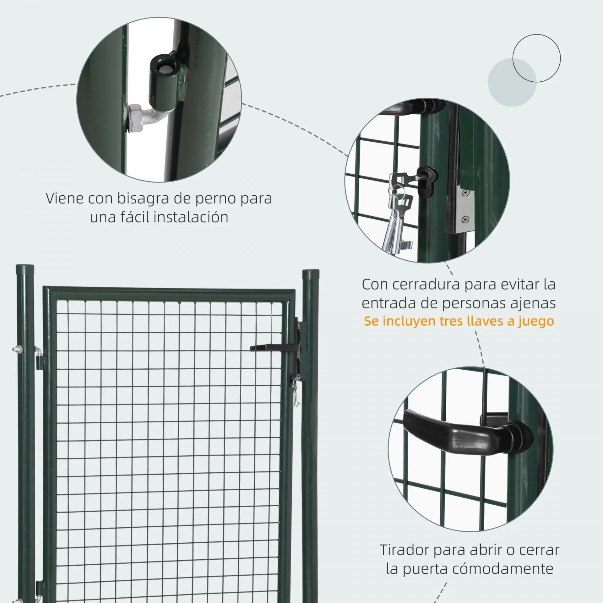 Puerta Verja de Jardín de Acero con Cerradura Manija y 3 Llaves Puerta de Valla Cerca para Exterior Patio Terraza 97x150 cm Verde