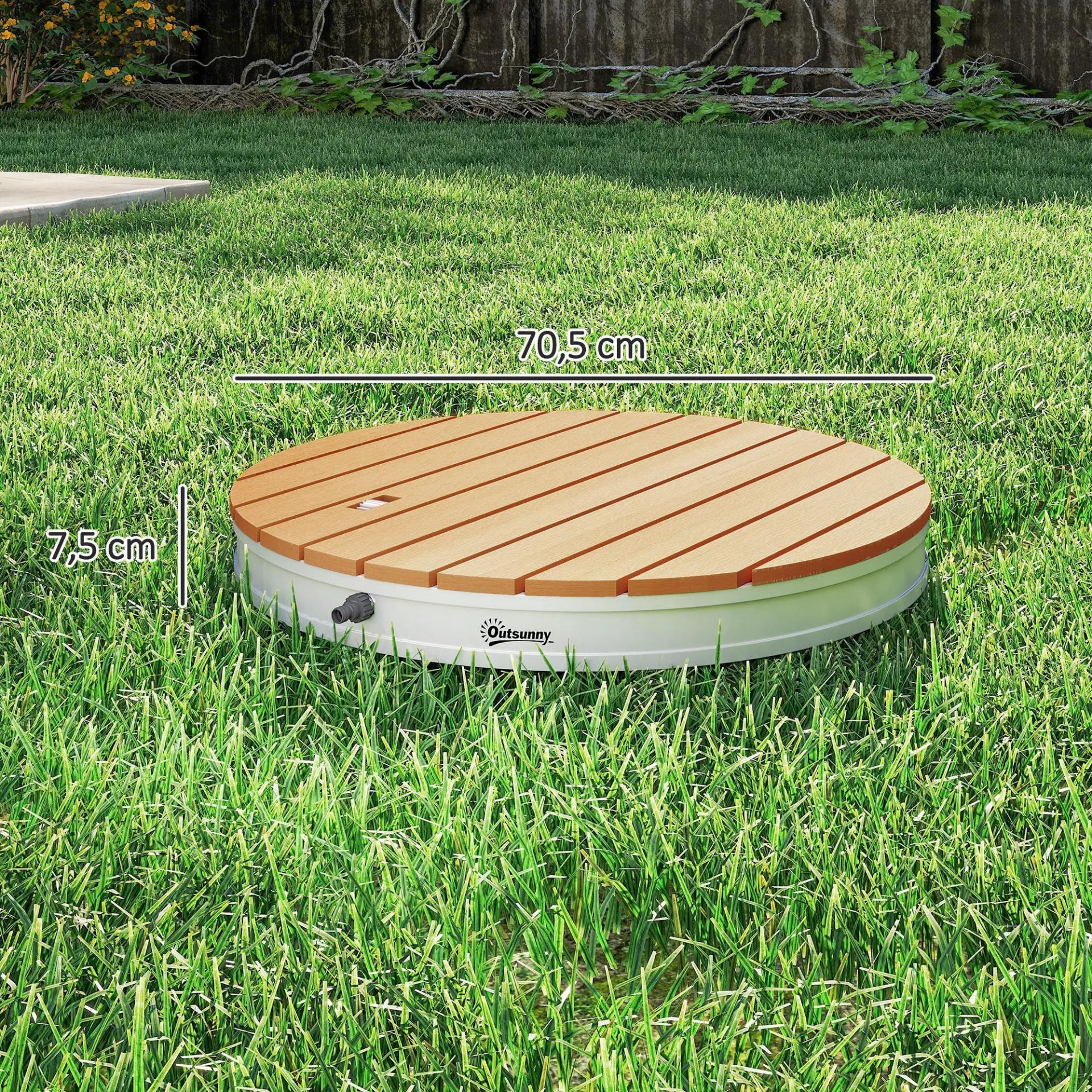 - - DISEÑO CIRCULAR DE 70,5 CM CON ACABADO MADERA: Su superficie redonda de Ø70,5 cm con efecto madera aporta un toque elegante y natural. Ideal para terrazas, jardines o zonas de piscina, encaja fácilmente en cualquier espacio exterior