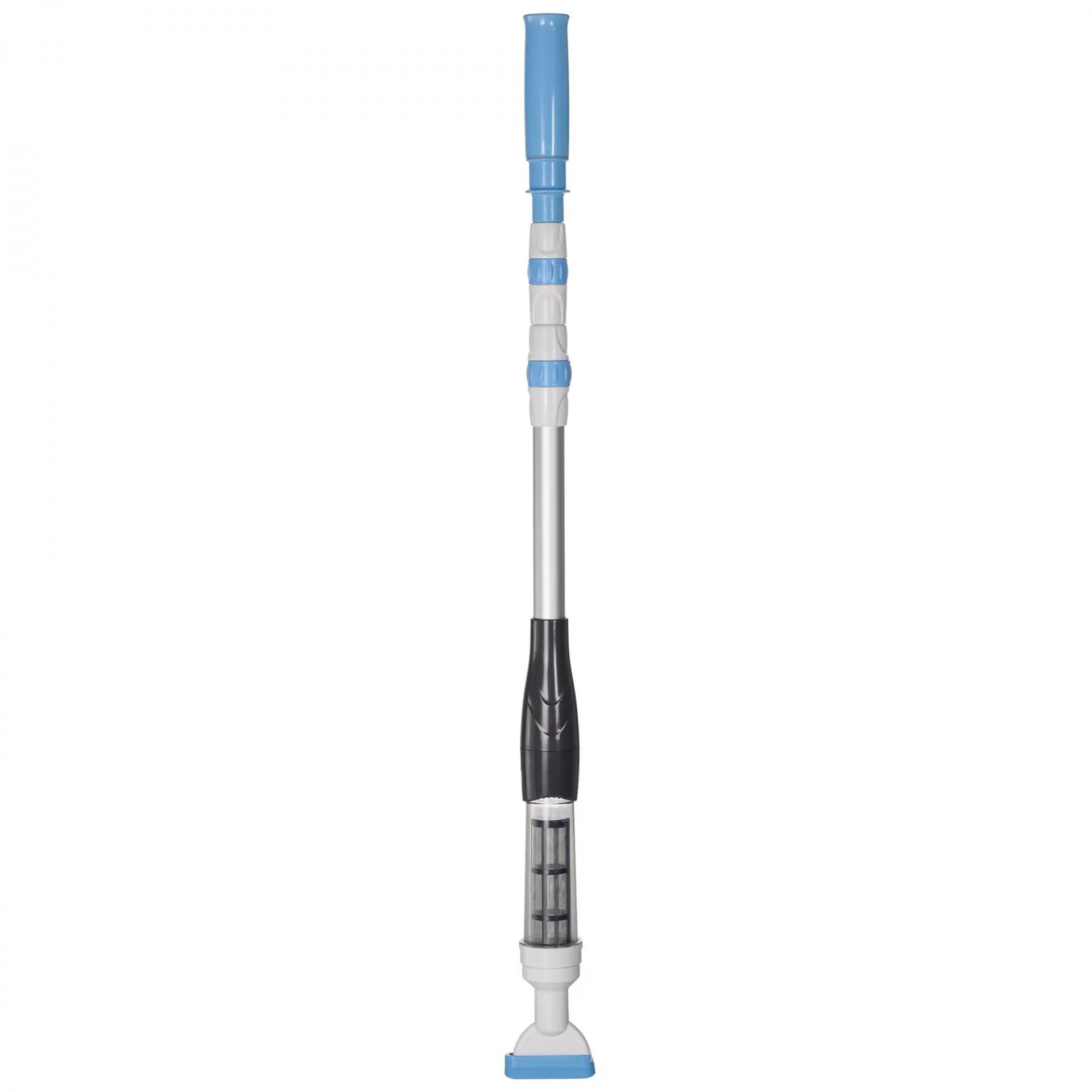 - - POSTE TELESCÓPICO: Equipado con un poste telescópico extensible de 3 secciones, su longitud se puede ajustar entre 106 y 162 cm, lo que permite un fácil acceso a todos los rincones de la piscina. Al mismo tiempo es cómodo porque se puede ajustar a la altura de cada usuario