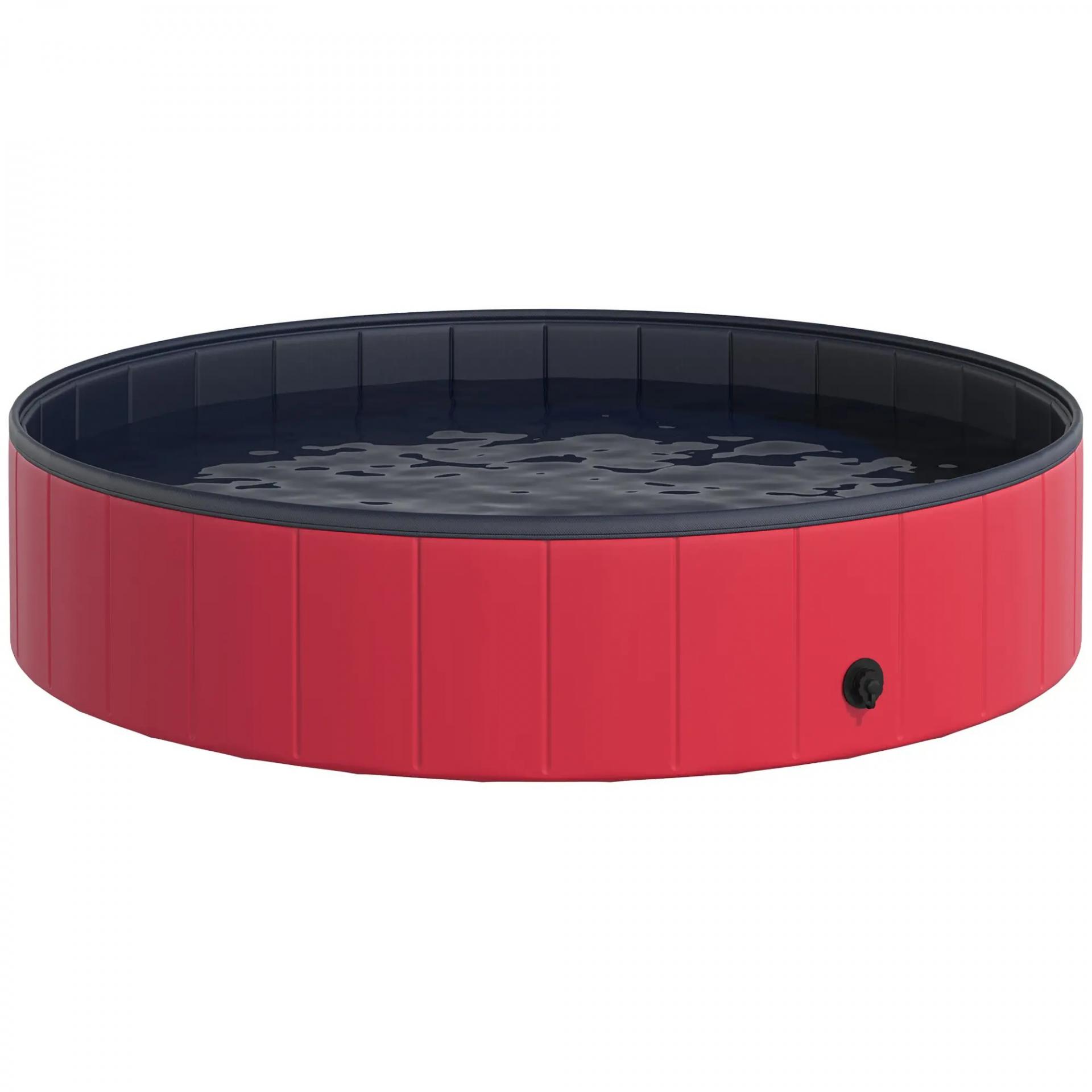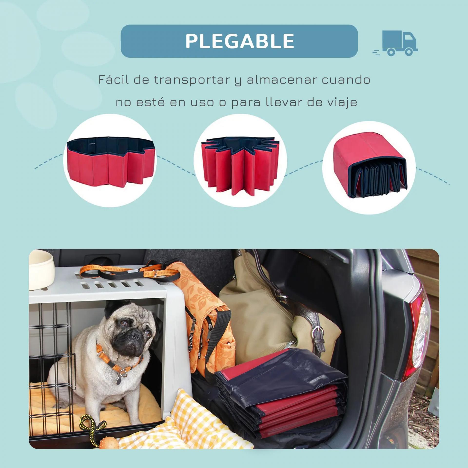 Piscina Plegable para Perros Gatos Ø140x30 cm Bañera Portátil para Mascotas PVC Antideslizante Múltiples Usos Color Rojo