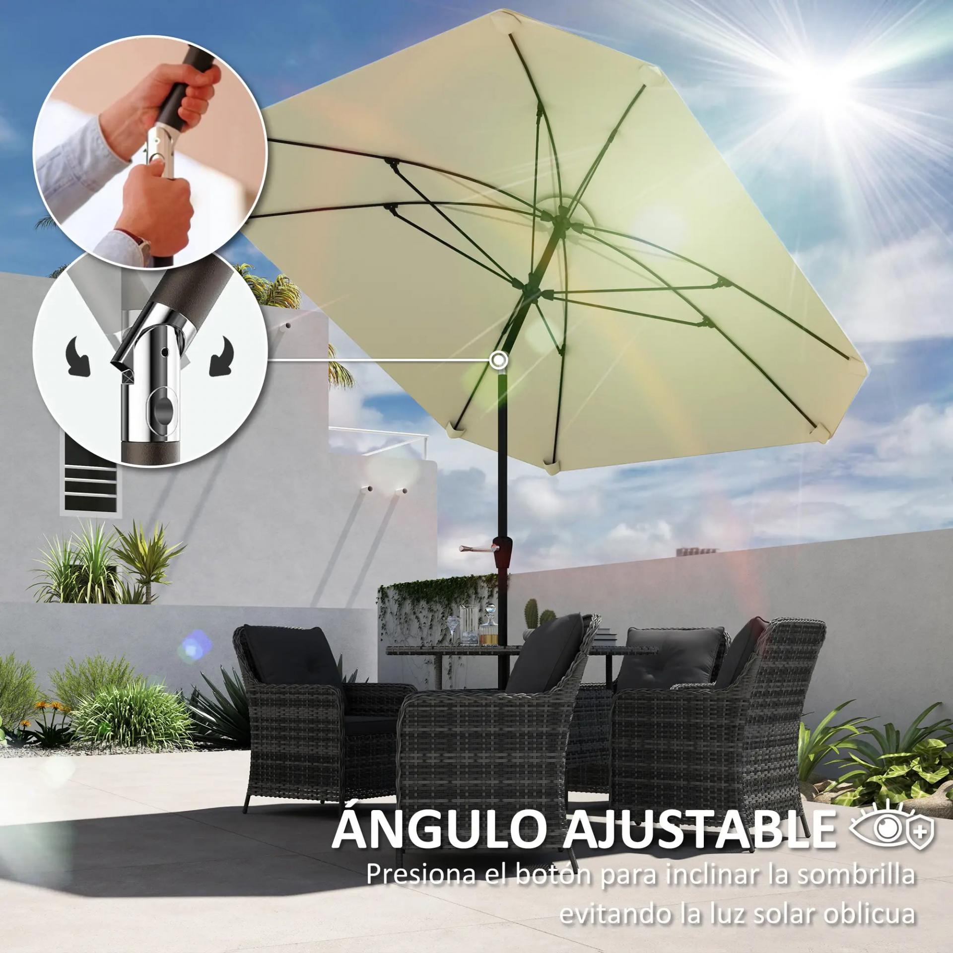 Sombrilla de Jardín 233x233 cm Ángulo Ajustable Impermeable Poste de Aluminio Varillas de Fibra de Vidrio Manivela Crema