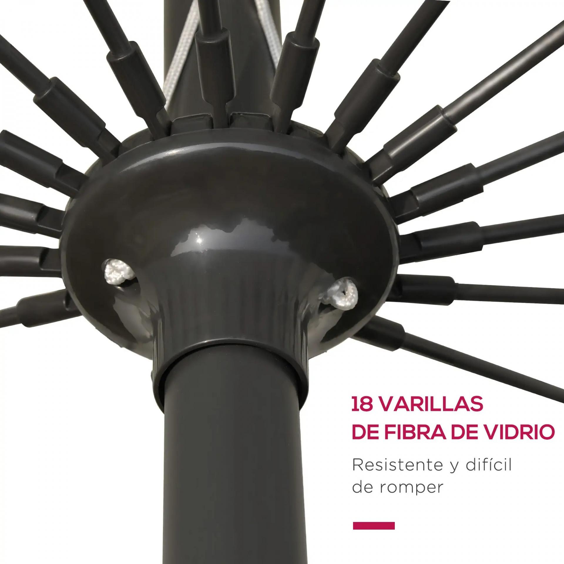 - - ESTRUCTURA RESISTENTE: Sombrilla de jardín exterior con poste metálico con 18 varillas con recubrimiento en polvo para mayor resistencia a la intemperie y a la corrosión. La cubierta de poliéster de 160 g/m², filtra los rayos dañinos del sol