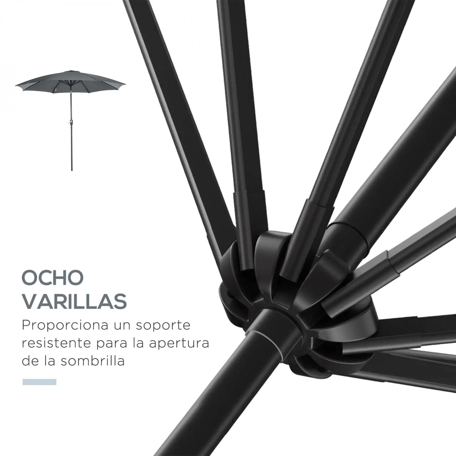 - - ESTRUCTURA RESISTENTE: Sombrilla con armazón de metal con recubrimiento en polvo de alta resistencia y tela de poliéster de 180 g/m². Además, dispone de 8 varillas para sujetar la tela del toldo firmemente