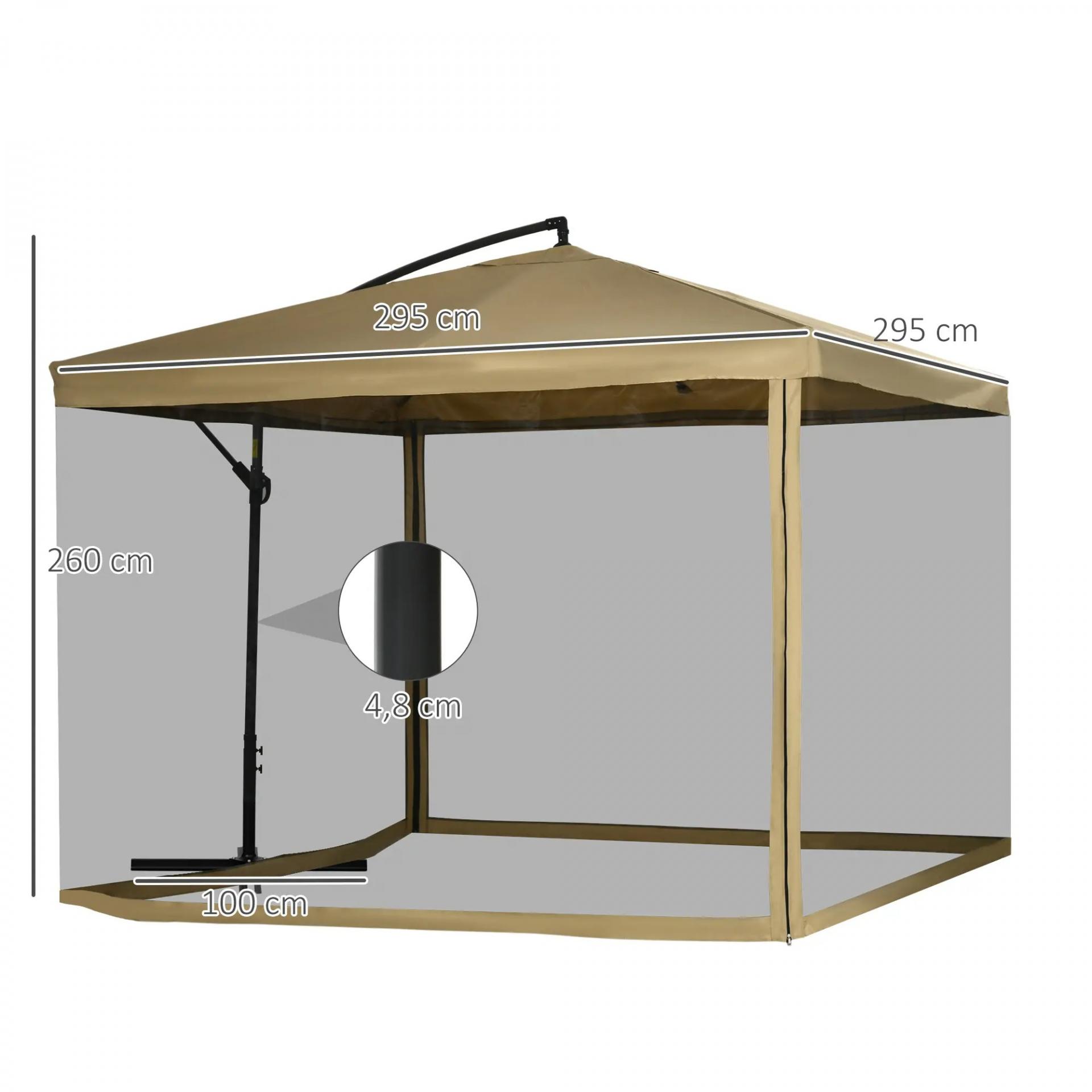 Sombrilla de Jardín Excéntrica 296x296x265 cm con Manivela Mosquitera y Base Cruzada para Terraza Patio Color Beige