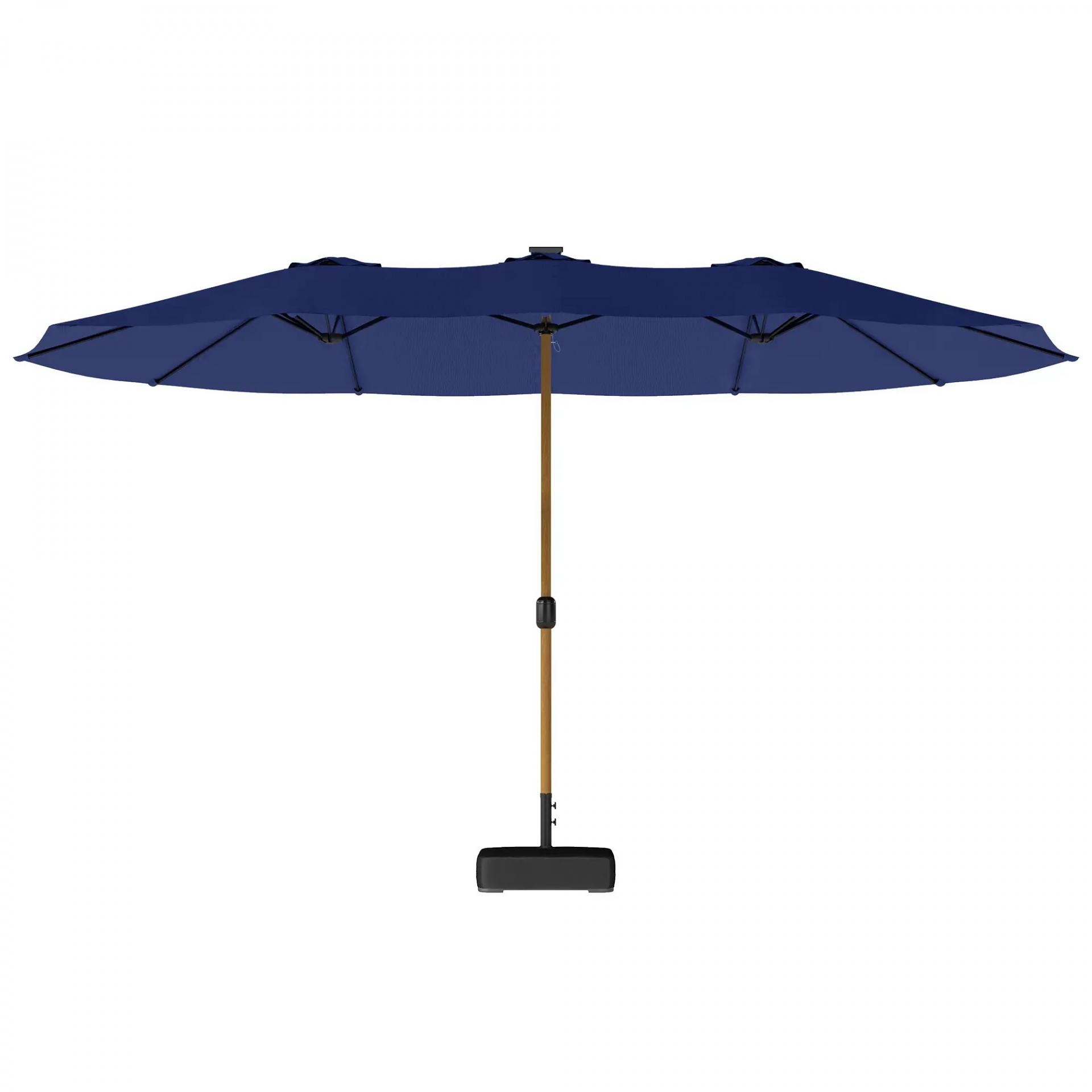 Sombrilla Doble de Jardín 4,7x2,8 m con Base Incluida Manivela Sacos de Arena Protección UV Impermeable Azul Oscuro
