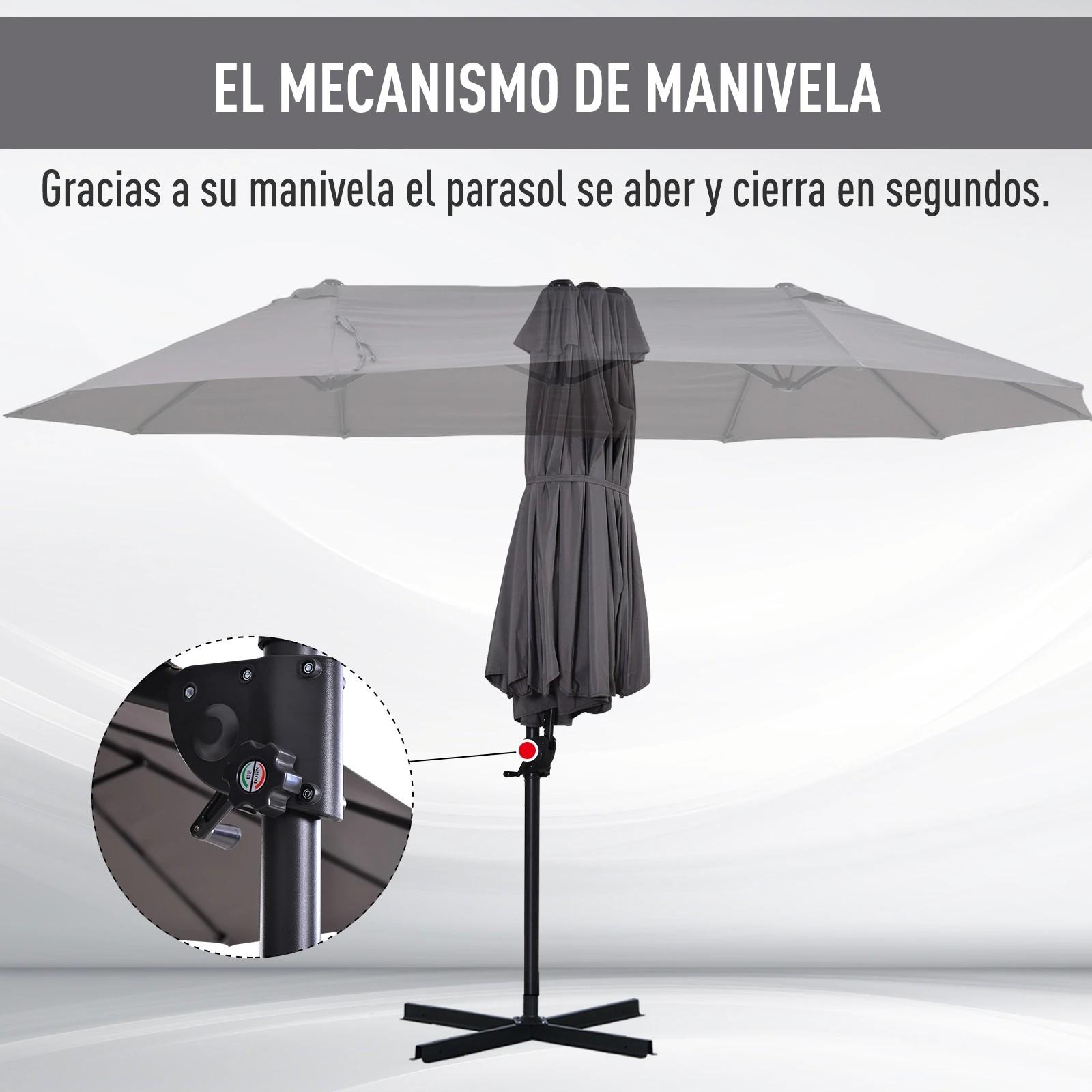 - - APERTURA Y CIERRE CON MANIVELA: Sombrilla muy fácil de usar gracias a su mecanismo de apertura y cierre mediante manivela manual. La manivela está situada en el mismo mástil por lo que te será muy fácil de utilizar y regular según tus necesidades
