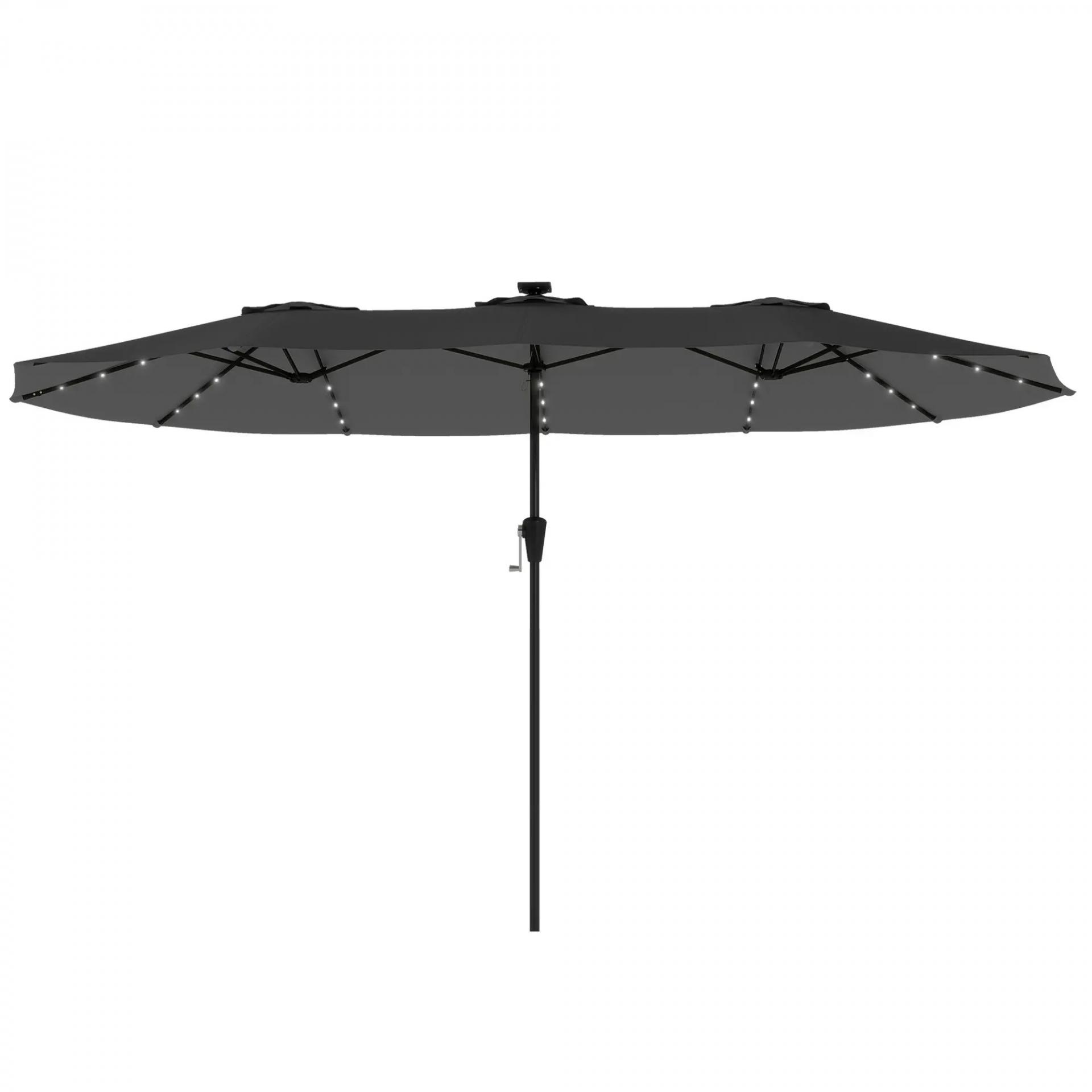 Sombrilla Doble de Jardín 4x2 m con 36 Luces LED UPF50+ Manivela 12 Varillas Resistente al Agua Gris Oscuro