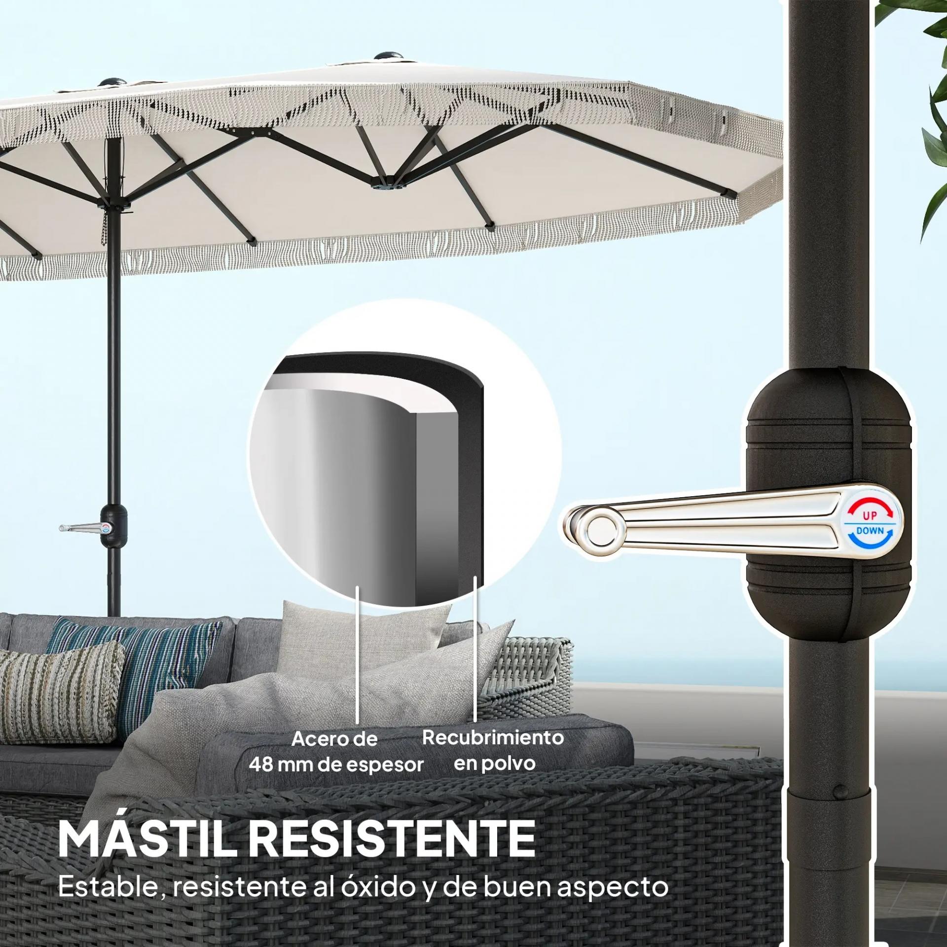 - - MÁXIMA ESTABILIDAD: Equipada con mástil de metal recubierto con polvo y 12 varillas de metal, esta sombrilla doble ofrece un soporte resistente y seguro, garantizando estabilidad y durabilidad durante el uso