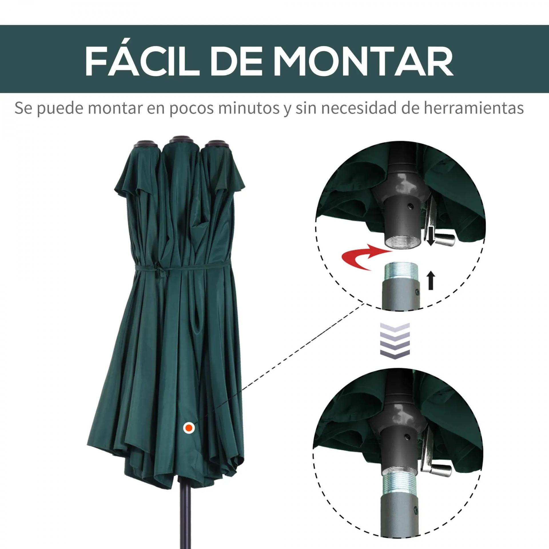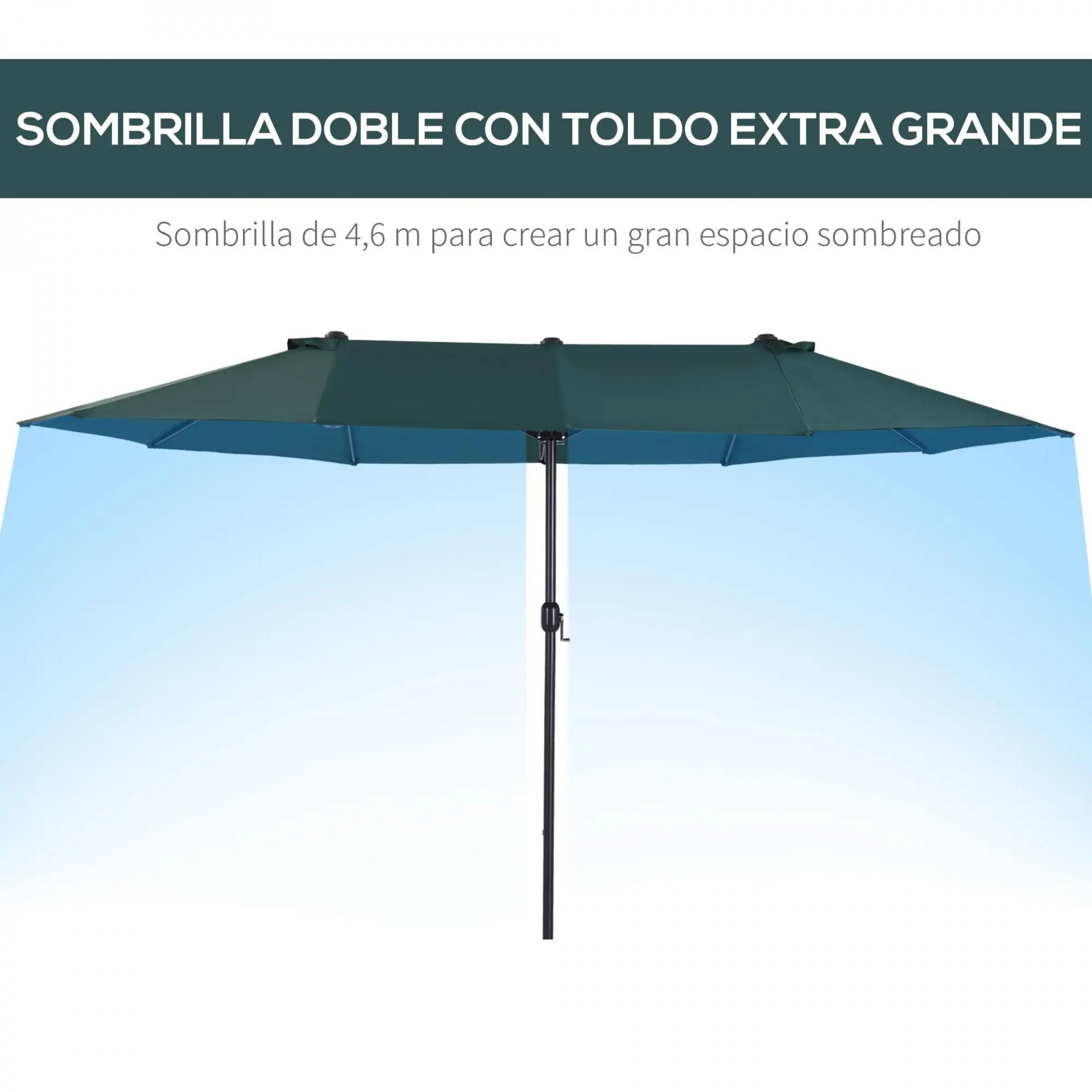 Sombrilla Doble para Jardín 455x265x238 cm Parasol Grande con Manivela Manual Protección Solar Verde Oscuro
