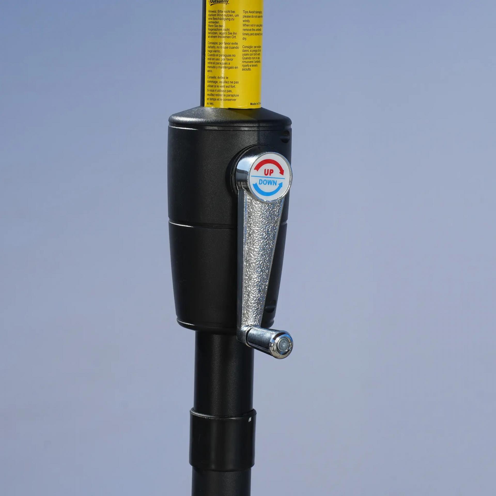 - - APERTURA MEDIANTE MANIVELA: Sombrilla de exterior muy fácil de usar gracias a su mecanismo de apertura y cierre mediante manivela. La manivela está situada en el mismo poste, por lo que será muy fácil de usar y ajustar según tus necesidades