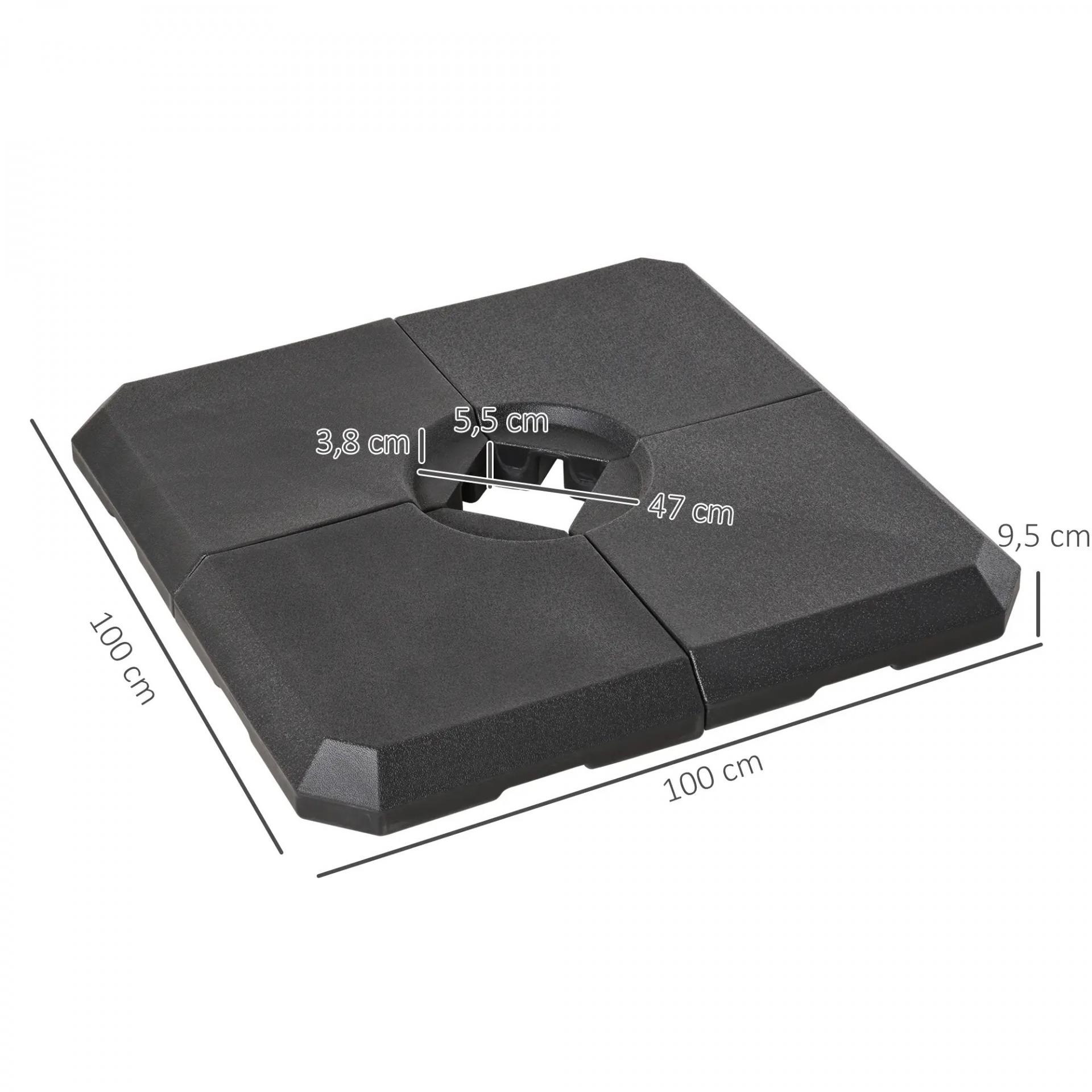Set de 4 Piezas Soporte de Parasol Base para Sombrilla Terreza o Jardín Rellenable de 80 kg de Agua o 120 kg de Arena Estable 100x100x9,5 cm Negro