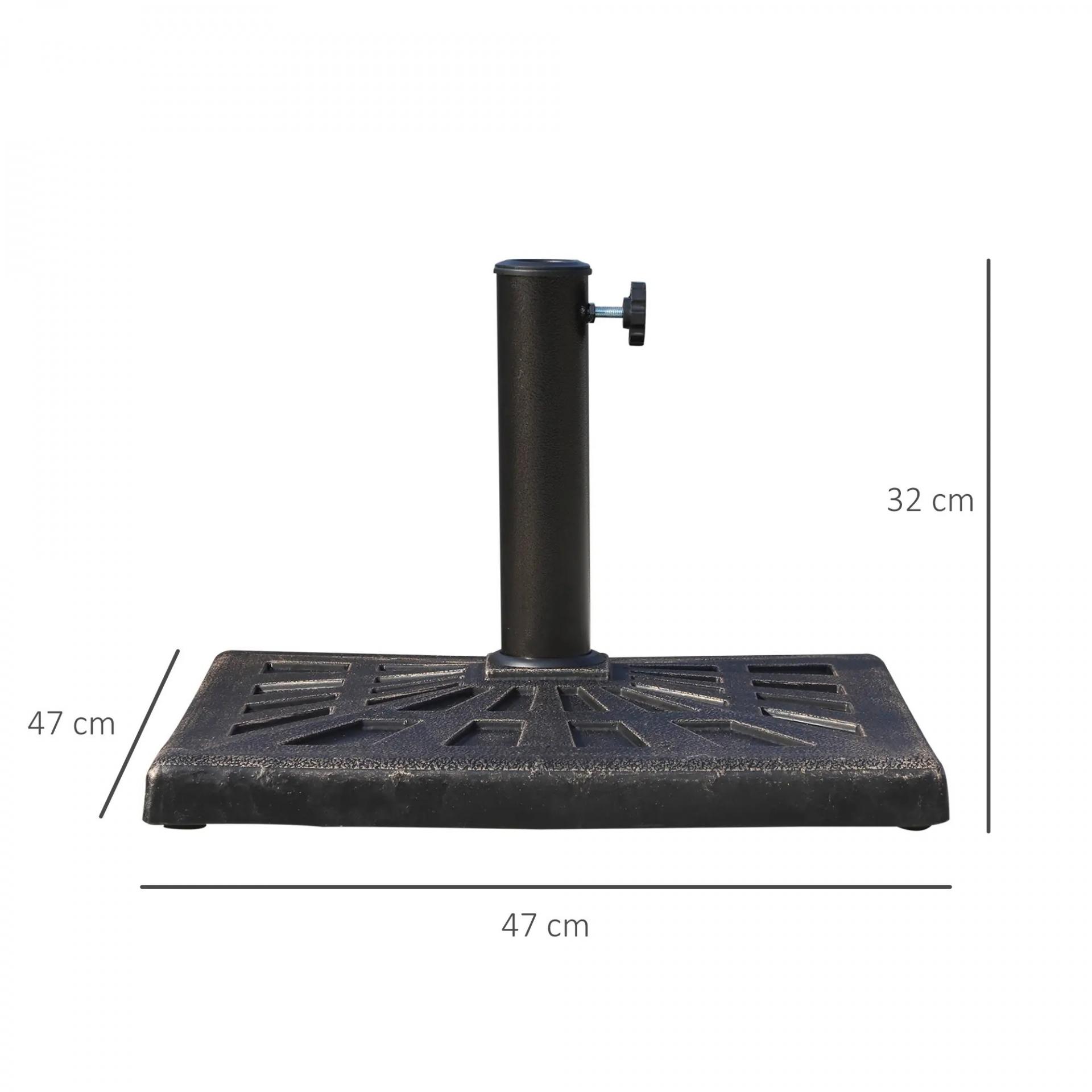 Base para Sombrilla de Resina Peso 15 kg para Poste de Parasol de Ø3,8 cm y Ø4,8 cm para Terraza 47x47x32 cm Bronce
