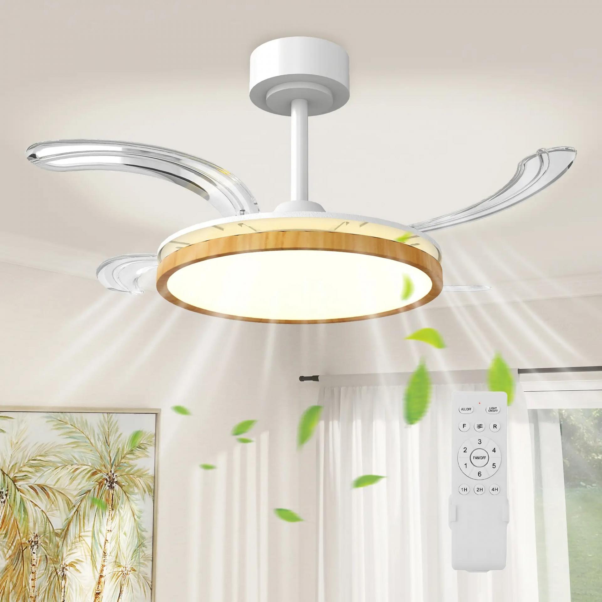 - ASPAS DE VENTILADOR RETRÁCTILES: Las 4 aspas transparentes se extienden a 95 cm para refrescar y se retraen a 40 cm, mostrando una lámpara minimalista ideal para habitaciones modernas