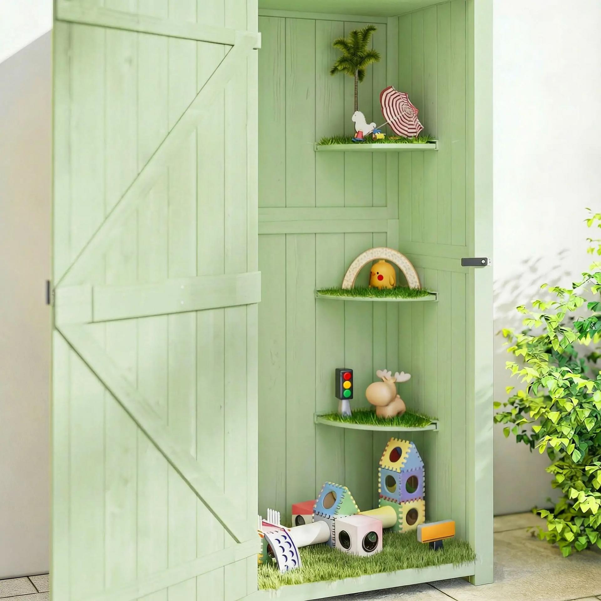 Armario de Jardín de Madera Armario de Almacenamiento Cobertizo de Jardín con Estantes 77x54,2x179 cm Verde
