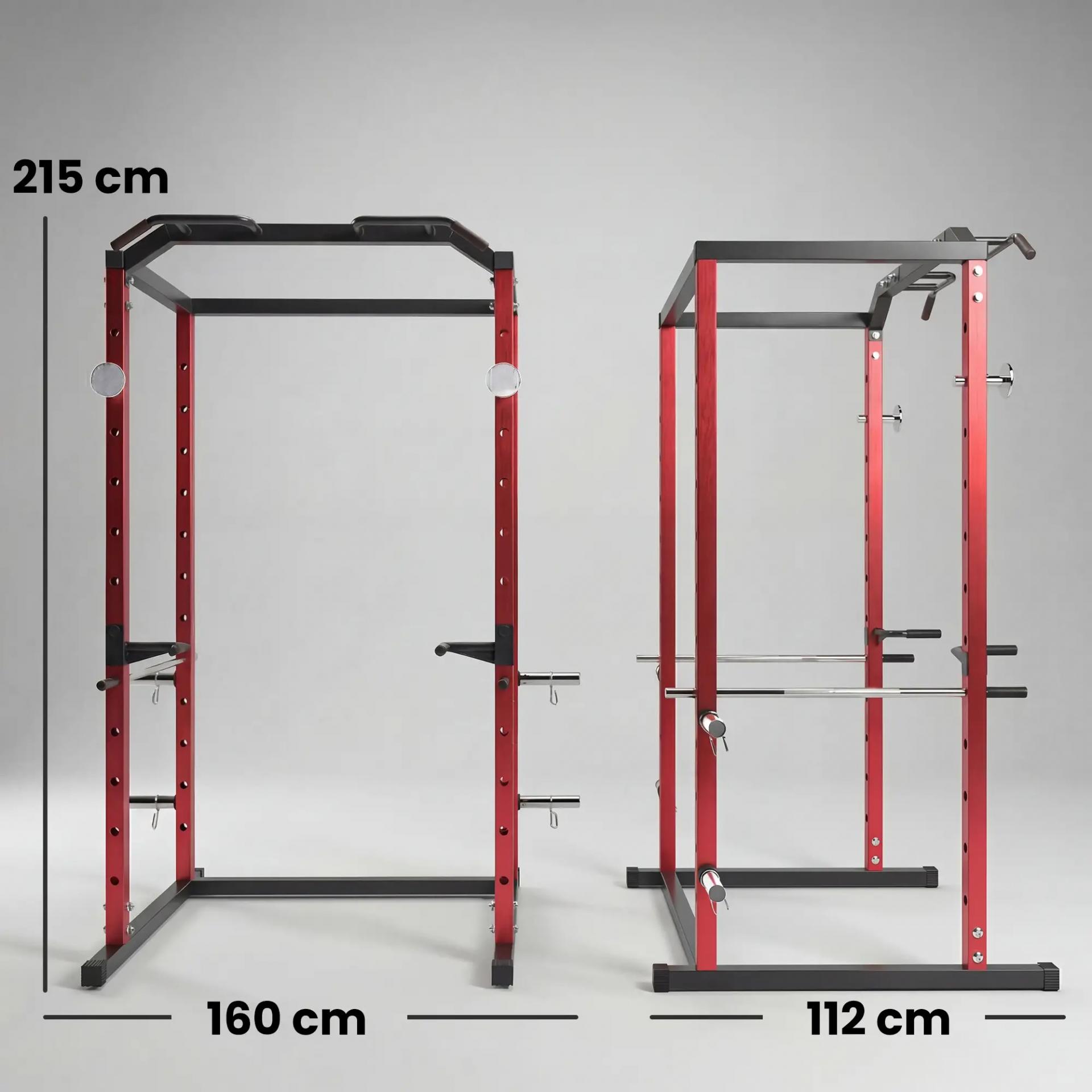 - TODO EN UNO PARA ENTRENAR EN CASA: Jaula de potencia para sentadillas, dominadas y fondos en una estructura compacta. Permite montar un gimnasio funcional en casa o garaje y realizar rutinas completas de fuerza sin ocupar el espacio de varias máquinas